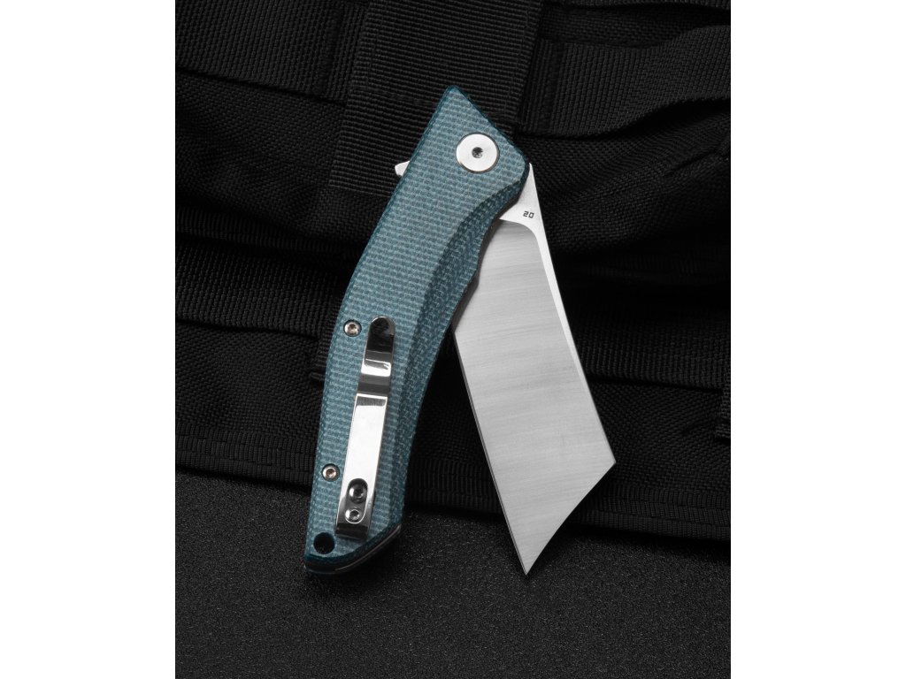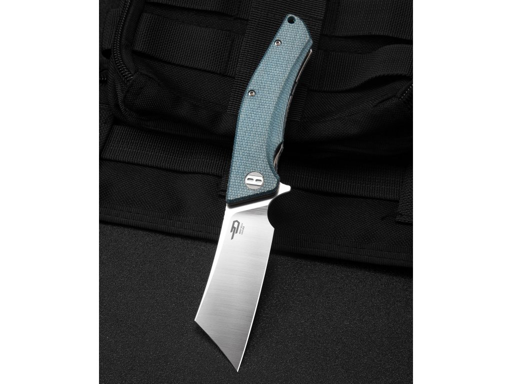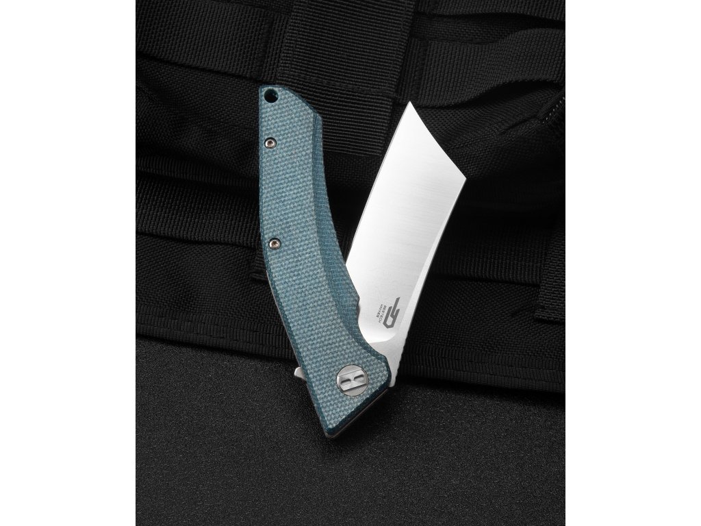 A Bestech Cubis egy közepes méretű összecsukható kés szokatlan pengeformával (módosított tanto), mindennapi használatra alkalmas. A matt felületű D2 lapos élezésű szerszámacél penge 8 cm hosszú és kerámia csapágyakra van felszerelve, így a kés kinyitása egyszerű és sima. Kék micarta nyél. A kés liner lockral és acél klipsszel van felszerelve a felakasztáshoz. Egykezes nyitás a pengén lévő csappal.