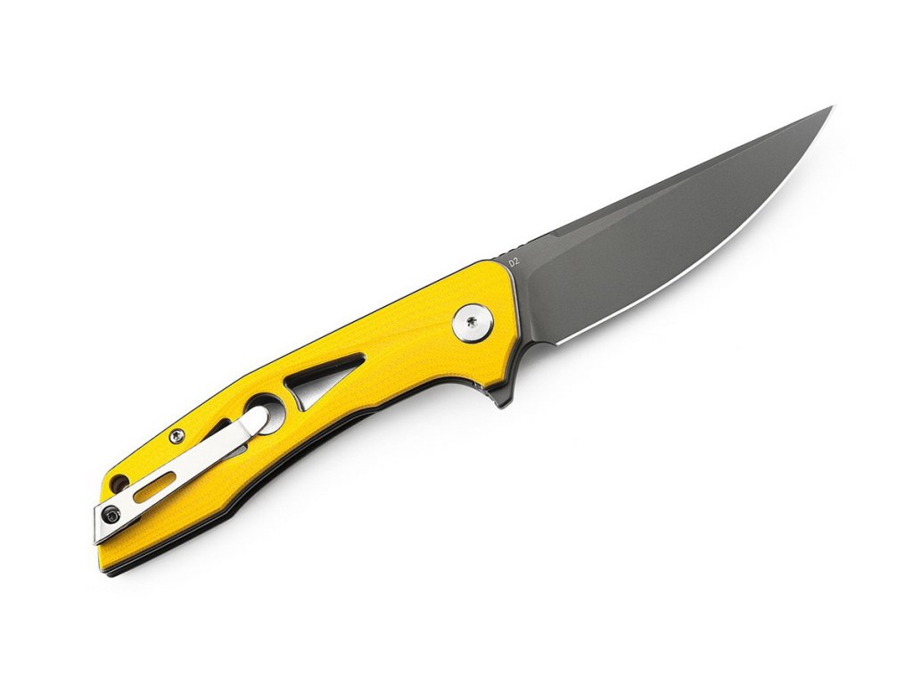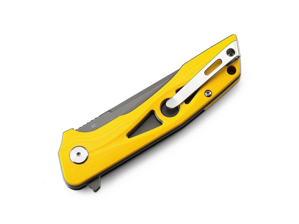 A Bestech Eye of Ra egy összecsukható kés mindennapi használatra. A lapos élezésű D2 szerszámacél penge 8,6 cm hosszú, kerámia csapágyakra van felszerelve, aminek köszönhetően a kés nyitása könnyű és sima. Sárga G10 markolat. A kés liner lock zárral és acél klippel van felszerelve a felakasztáshoz. Flipper nyitás.