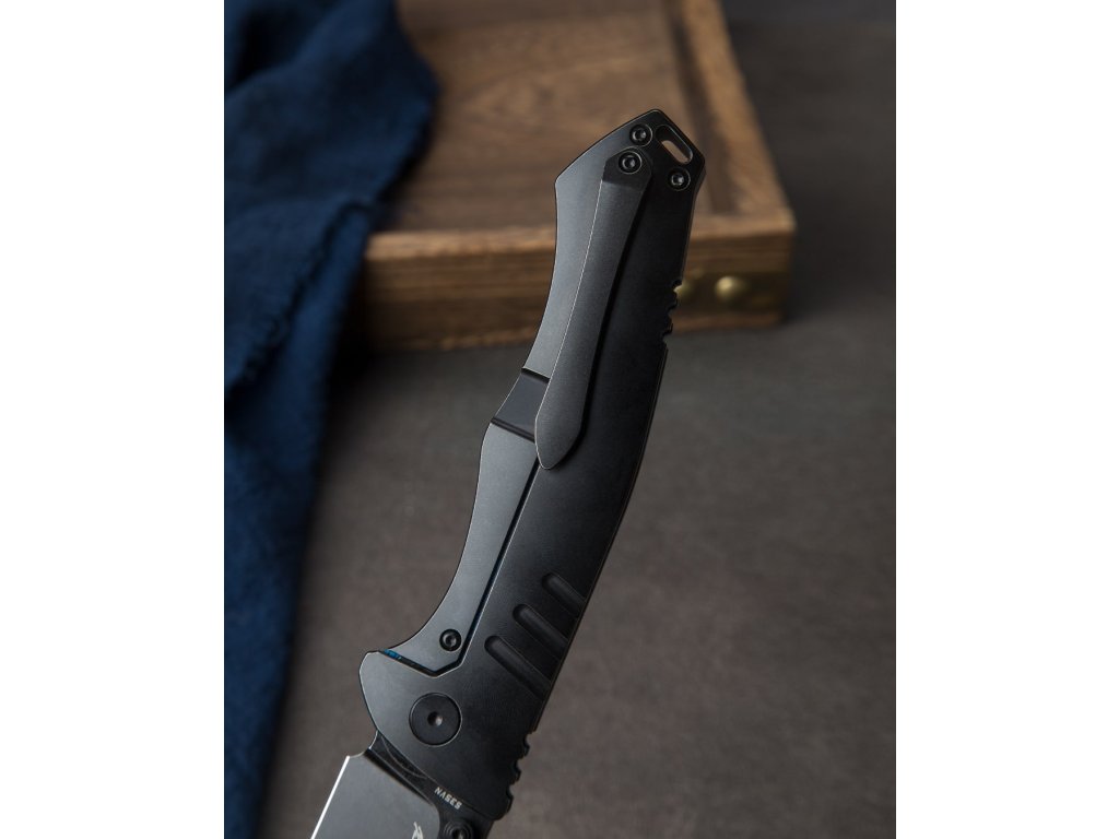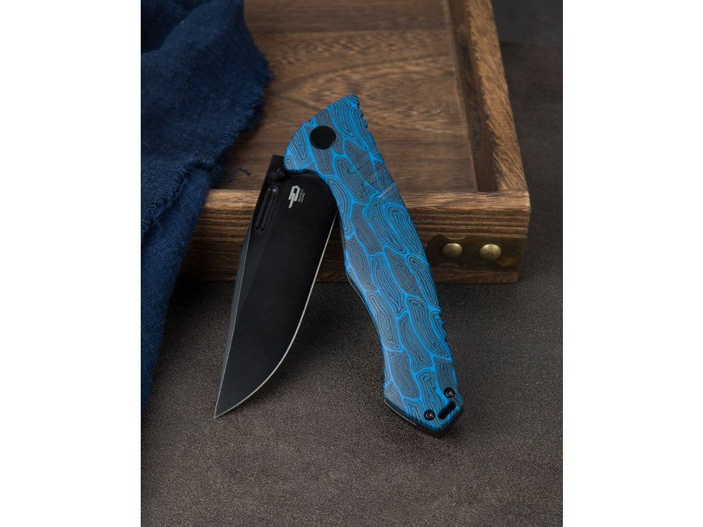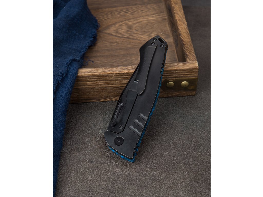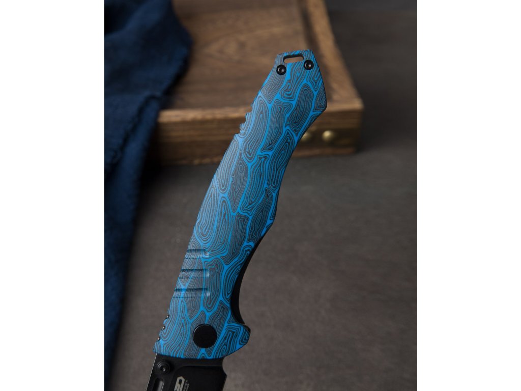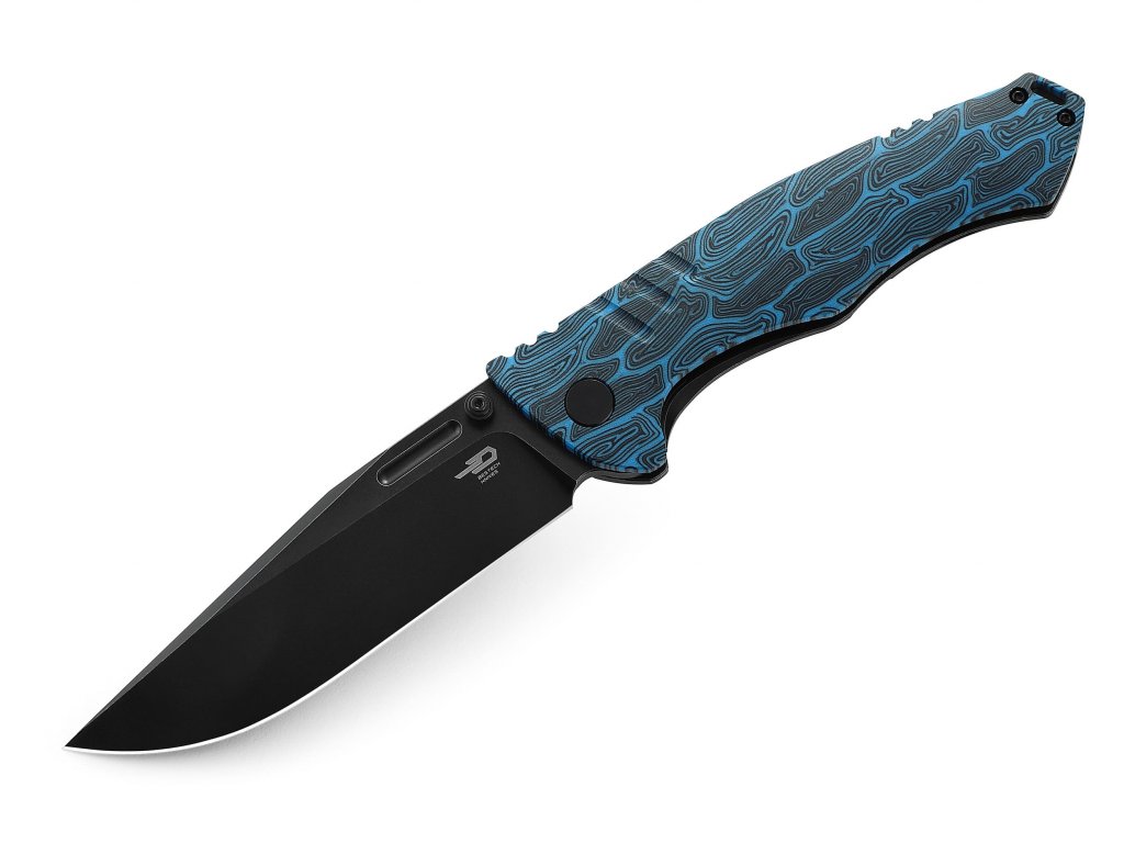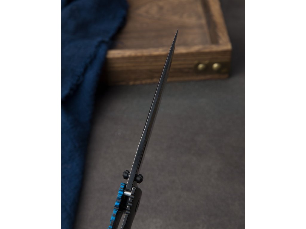 A Bestech Keen II BT2301D egy exkluzív összecsukható kés prémium anyagokból. A kialakítás egy frame lock zár, thumb stud nyitómechanizmussal és kerámia csapágyakra szerelt pengével. A kés pengéje S35VN prémium acélból készült, 10,6 cm hosszú clip point alakú, stonewash felülettel. Az acél keménysége 59-60 HRC között változik. Az érdekes fekete-kék kivitelű markolat G10-ből és titánból készült. A késhez tartozik egy akasztókapocs a kés biztonságos hordozásához. A Keen II zsebkést az egyedi darabok minden szenvedélyes gyűjtője értékelni fogja.