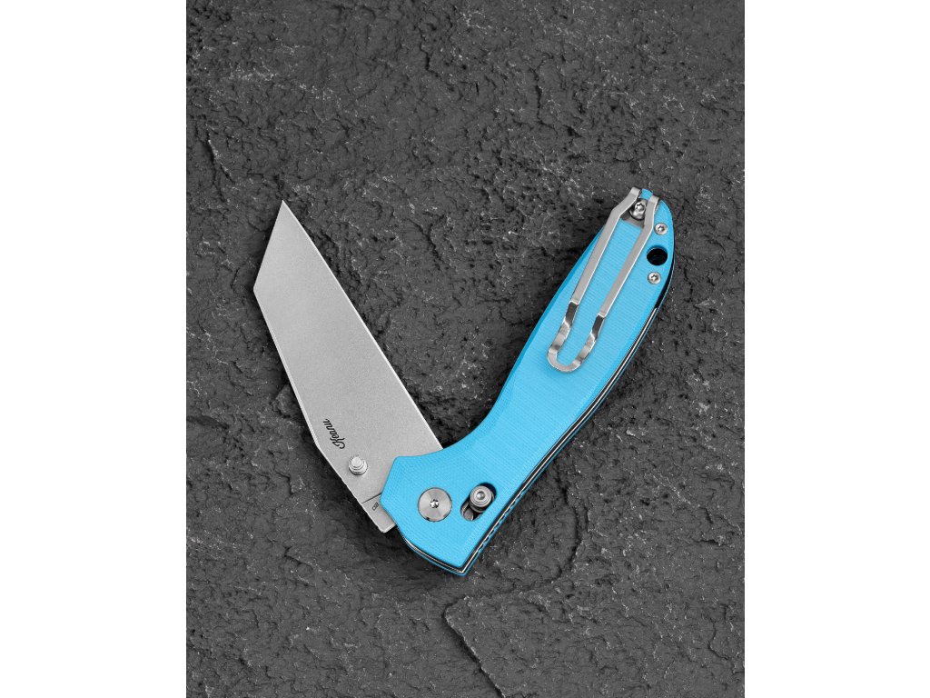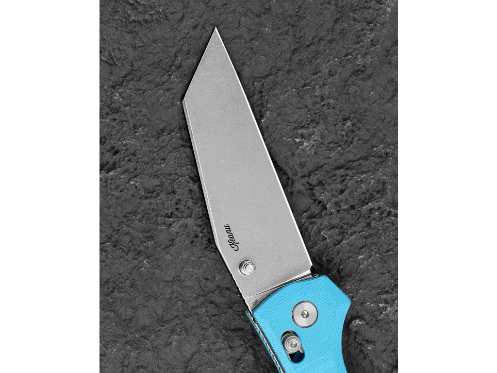 Rendkívül masszív, mindennapi használatra szánt összecsukható kés. A penge D2 szerszámacélból készült, stonewashed felülettel, és a penge alakja wharncliffe lapos élköszörüléssel. A penge kerámia golyóscsapágyakon fut, amelyek biztosítják a kés sima nyitását. A penge vastagsága 3,5 mm, hossza 9,16 cm.