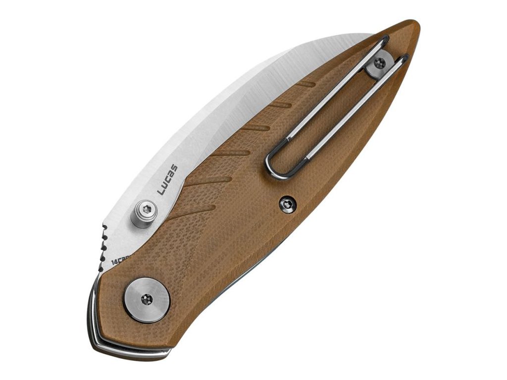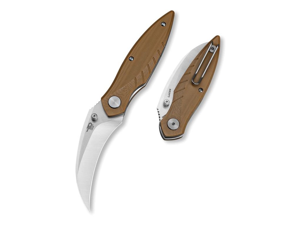 Közepes méretű zsebkés, amelyet mindennapi viselésre terveztek. A lapos élezésű 14C28N rozsdamentes acélból készült penge 7,4 cm hosszú és kerámia csapágyazott. A penge kivitelezése a szatén és a stonewash kombinációja. Barna G10 textúrájú markolat a szilárdabb fogás érdekében. A kés a népszerű liner lock biztonsági zárral és egy acélkapoccsal rendelkezik a felakasztáshoz. Egykezes nyitás a pengén található hüvelykujjas szegeccsel. A Bestech Mantidae modell sajátossága az ívelt pengeforma (Hawkbill) - kiválóan vág a tolóerővel, de az éles hegyet anyagok átszúrására is használhatja. A penge hátsó része tompa, így rendkívül biztonságos még akkor is, ha ujjait a penge tetején pihenteti. A kés súlya mindössze 96 g.