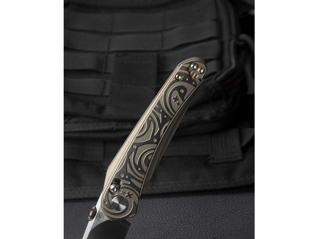 A Bestech Mothus BT2206B egy prémium minőségű összecsukható kés, első osztályú anyagokból készült egyedi kialakítással. Szerkezetileg egy bar lock nyitómechanizmussal thumb disk és penge kerámia csapágyakra szerelt pengével. A prémium M390 acélból készült penge drop point alakú, 8,8 cm hosszú, matt felülettel. Az acél keménysége 59-61 HRC között változik. A markolat bronz színű titánból, a függesztőkapocs pedig szürke színű.