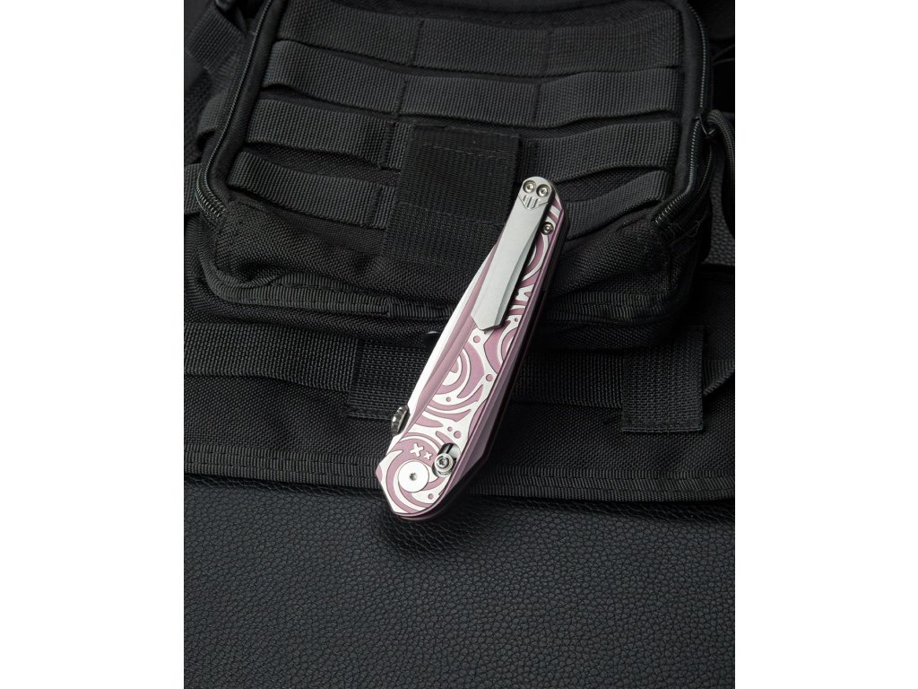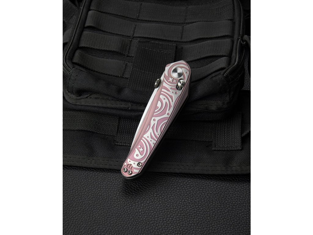 A Bestech Mothus BT2206D prémium összecsukható kés, egyedi tervezésű, első osztályú anyagokból. Szerkezetileg egy bar lock nyitómechanizmussal thumb disk és penge kerámia csapágyakra szerelt pengével. A prémium M390 acélból készült penge drop point alakú, 8,8 cm hosszú, matt felülettel. Az acél keménysége 59-61 HRC között változik. A markolat és az akasztócsipesz titánból készült rózsaszín és szürke színben.