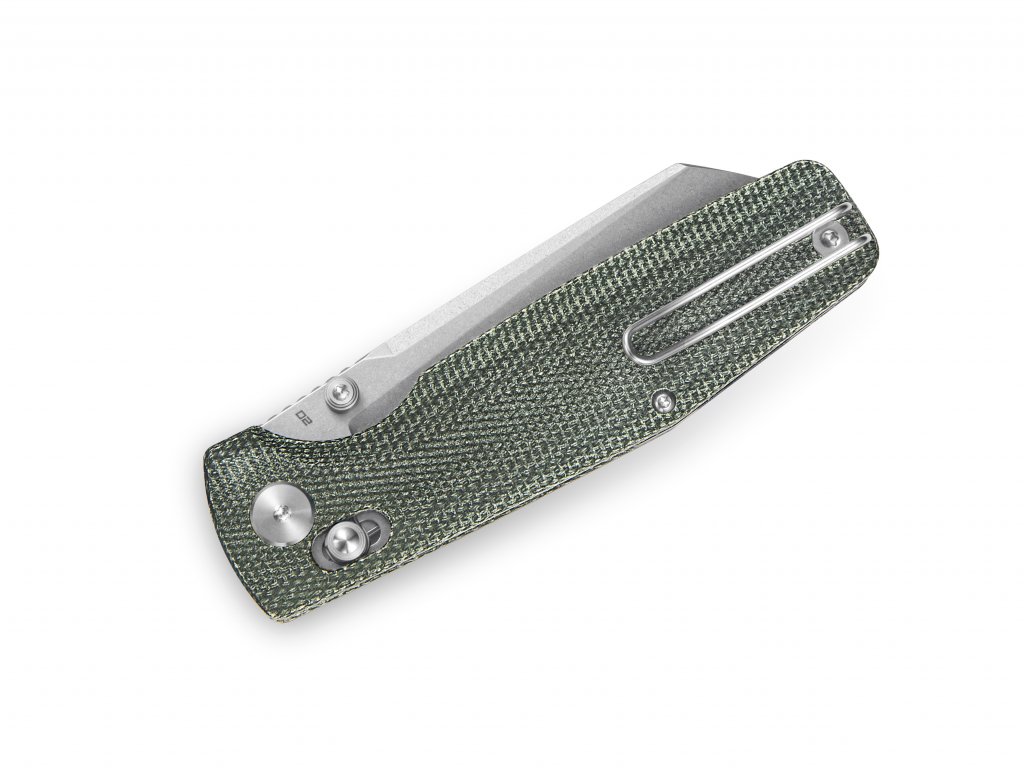 Közepes méretű zsebkés, amelyet mindennapi viselésre terveztek. A penge D2 acélból készült, lapos élezéssel, 8,9 cm hosszú és kerámiacsapágyazott. A penge kivitelezése stonewash. Markolat zöld micarta színű, texturált markolattal a biztosabb fogás érdekében. A kés rúdzárral és acélkapoccsal van felszerelve, amely lehetővé teszi a mélyre akasztást, és mindkét oldalra (jobbra/balra) megfordítható. Egykezes nyitás a pengén található csap segítségével.