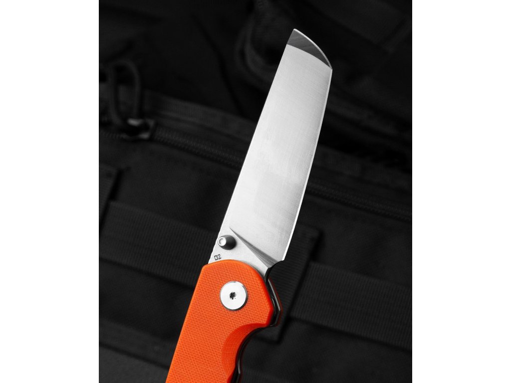 A Bestech Sledgehammer egy közepes méretű összecsukható kés, szokatlan pengéjével (módosított tanto), mindennapi használatra alkalmas. A D2 szerszámacél penge 7,6 cm hosszú, matt felületű és kerámia csapágyakra van felszerelve, így a kés kinyitása egyszerű és sima. Narancssárga G10 markolat. A kés liner lock zárral és acél klipsszel van felszerelve a felakasztáshoz. Egykezes nyitás a pengén lévő csappal.