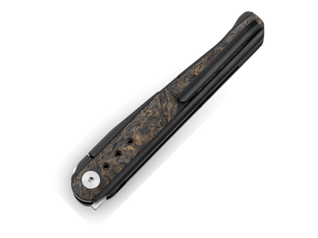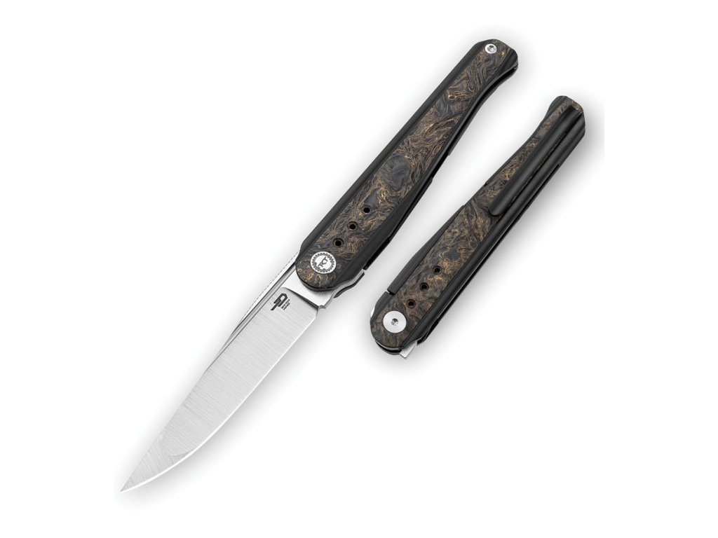 Best Spear Spear Phisher Frame Lock Black BT2405D prémium kés rendkívüli anyagokból készült. A 8,8 cm hosszú drop point penge prémium M390 acélból készült, amelyet napjaink egyik legjobb késacéljának tartanak. A penge szaténozott felületű, és 60-62 HRC extrém keménységet ér el . A penge kombinált vágást alkalmaz - ebben az esetben ez egy üreges vágás lapos hegyűvel. A kerámia csapágyak biztosítják a penge rendkívül sima és könnyű járását, ahogyan azt a Bestech késeknél megszoktuk. A markolat titánból készült, és a középső részen barna szénszálas bevonatot alkalmaztak, ami csak fokozza a kés eleganciáját. A zsebklipsz és a hátlapi tüske szintén titánból készült. Egykezes nyitás a hüvelykujjal. A pengét egy keretzár rögzíti biztonságosan. A kés rendkívül könnyű súlya mindössze 70 g.