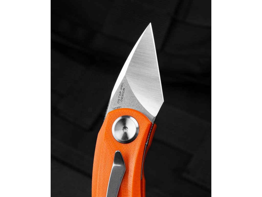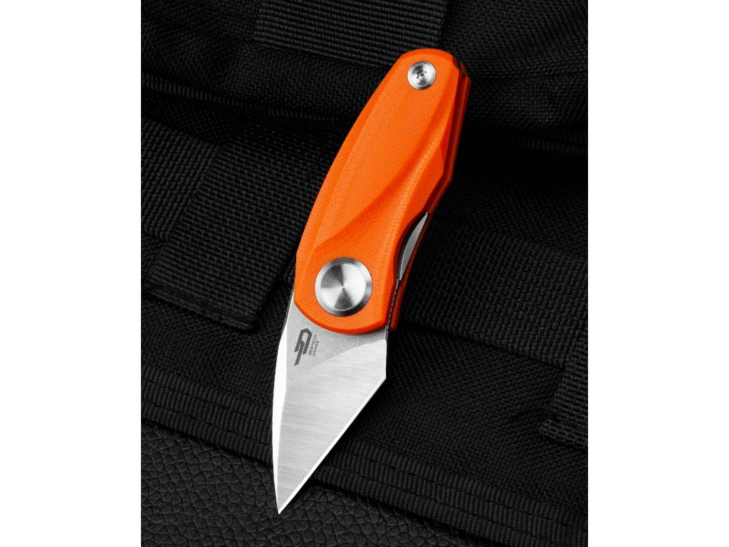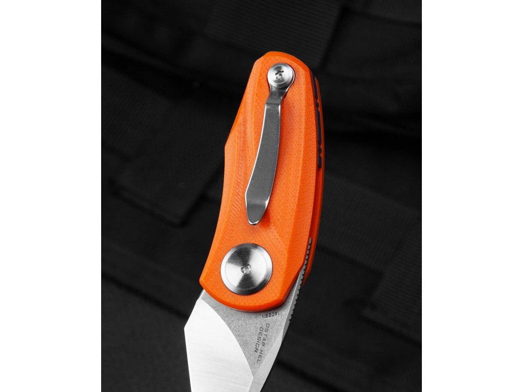 A Bestech Tulip egy kicsi, elegáns összecsukható kés mindennapi használatra. A penge Sandvik 14C28N rozsdamentes acélból készült, lapos élezésű, hossza 4 cm, kerámia csapágyakra van felszerelve. Narancssárga G10 markolat. A kés liner lock zárral és acél klipsszel van felszerelve a felakasztáshoz. Egykezes nyitás az front flipper segítségével.