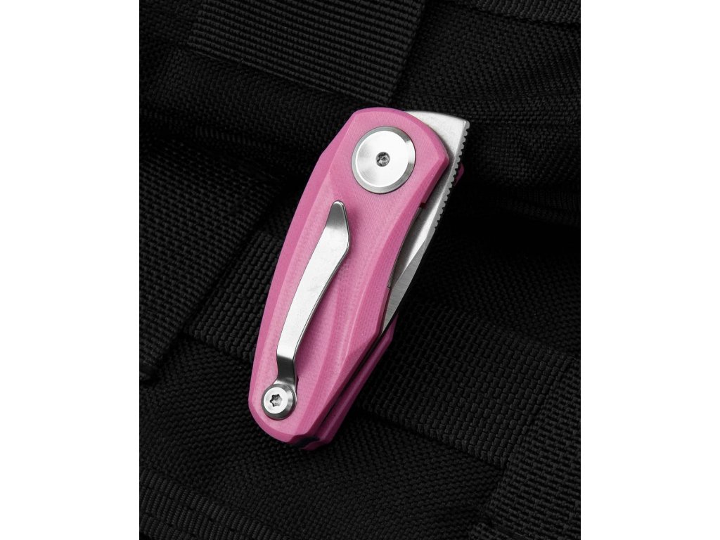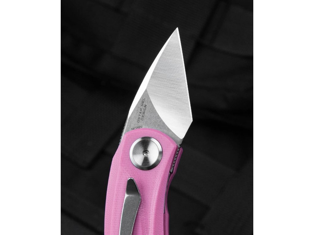 A Bestech Tulip egy kicsi, elegáns összecsukható kés mindennapi használatra. A penge Sandvik 14C28N rozsdamentes acélból készült, lapos élezésű, hossza 4 cm, kerámia csapágyakra van felszerelve. Markolat rózsaszín G10-ből. A kés liner lock zárral és acél klipsszel van felszerelve a felakasztáshoz. Egykezes nyitás az front flipper segítségével.