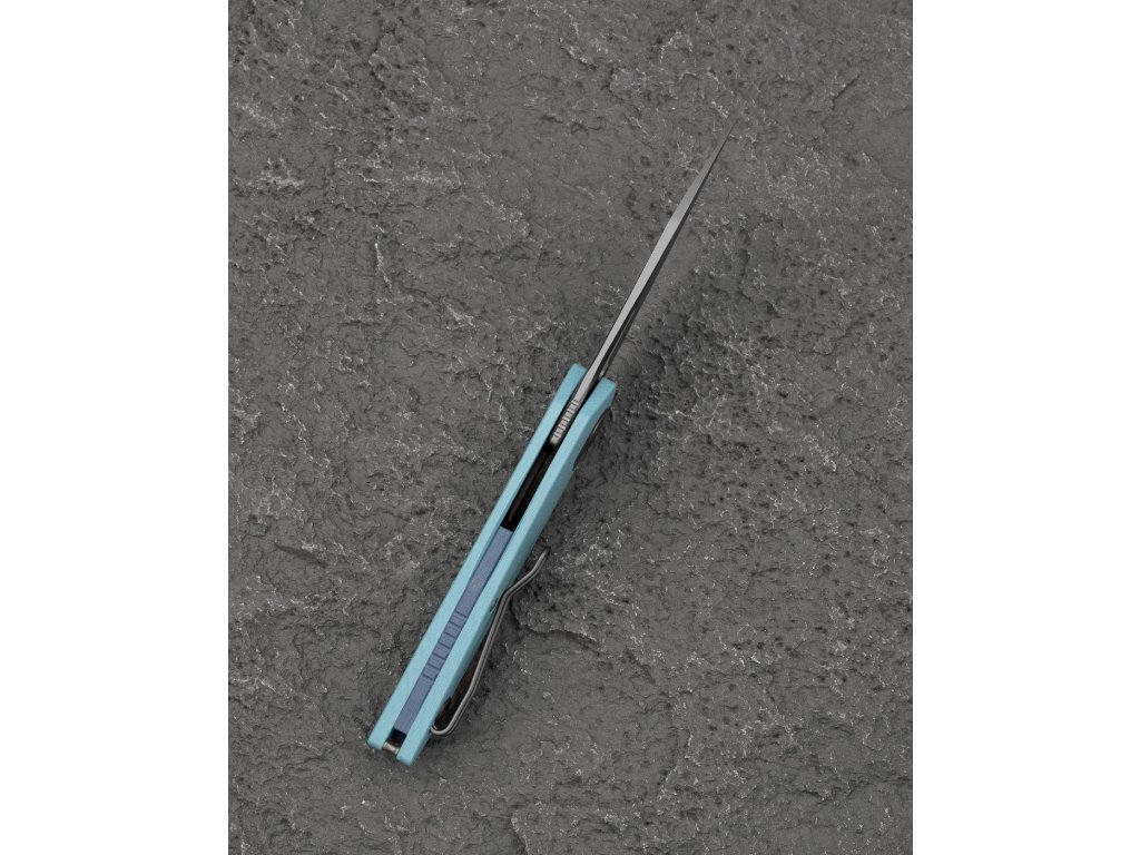 A szürke G10 markolat textúrázott felülettel rendelkezik, amely biztos fogást nyújt. A markolat hossza 10,81 cm. A kés penge kivágás (thumb hole) segítségével nyitható, a Liner Lock zárszerkezet pedig biztonságosan rögzíti a pengét nyitott állapotban. A zsebkés Tip-Up zsebcsipesszel van ellátva, amely jobbkezes használatra alkalmas. Teljes hossz: 18,06 cm. Súly: 82 g.
