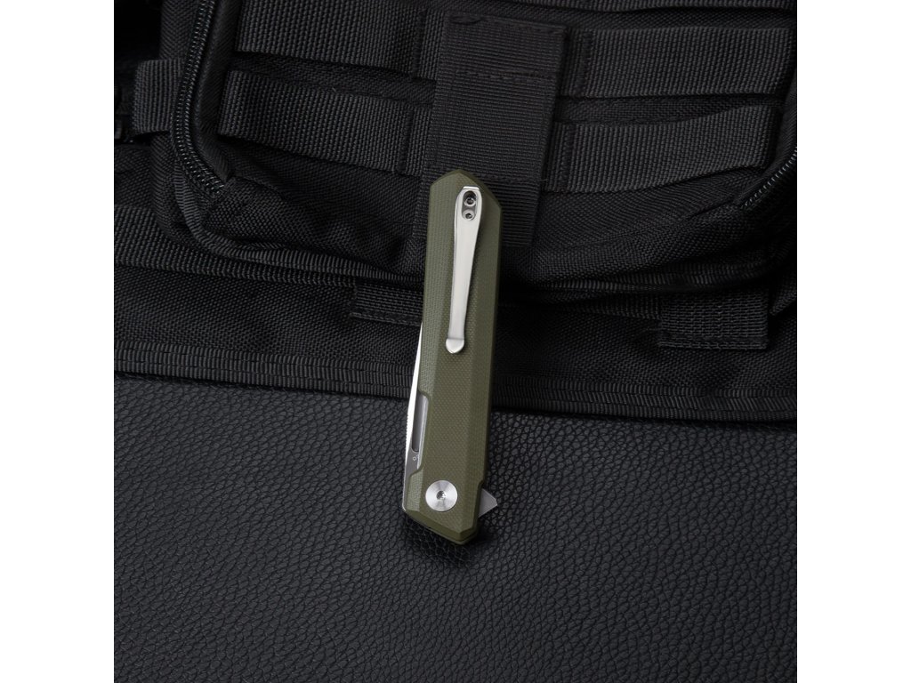 A Bestechman Dundee BMK01E egy EDC kés a népszerű Bestech márka műhelyéből. A zsebkés ideális mindennapi használatra és gyakorlatilag bárhová magaddal viheted. A 8,5 cm hosszú és szabványos pengéhez D2 acélt használtak. A lágy zöld színű G10 anyagból készült markolat kényelmes fogást biztosít. Klasszikus matt/satin felületet használnak. A bicska liner lockral és kétoldalas csíptetővel van felszerelve a felakasztáshoz. Egy csap is elegendő a kinyitáshoz, ami nagyon kényelmessé és gyorssá teszi a nyitást (flipper mechanizmus).
