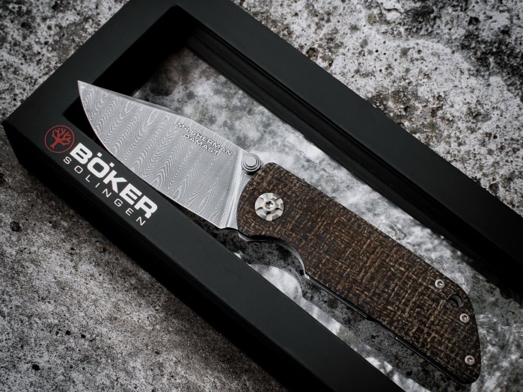 A kivételes Böker M4 Sherman-Damascus az élő történelem tanúja. A minőségi kivitelezést ötvözi az M4 Sherman tank történelmi anyagaival. A Böker Sherman Damascus kés pengéje egyedi damaszkuszi acélból készült, amelyet kovácsoltak világháborúban szolgáló M4 Sherman tank acéljából. Egyedülálló 80 rétegű damaszt, amelyet Chad Nichols kézzel kovácsolt egyedi mintában, amely az M4 Shermantank lánctalpai által a földben hagyott nyomokra emlékeztet. A golyóscsapágy penge a egy tokkujj tüske, és egy erős acélkeretes zár rögzíti. A Hinderer Lock-Stop kiegészítő biztosíték mely védelemként szolgál.