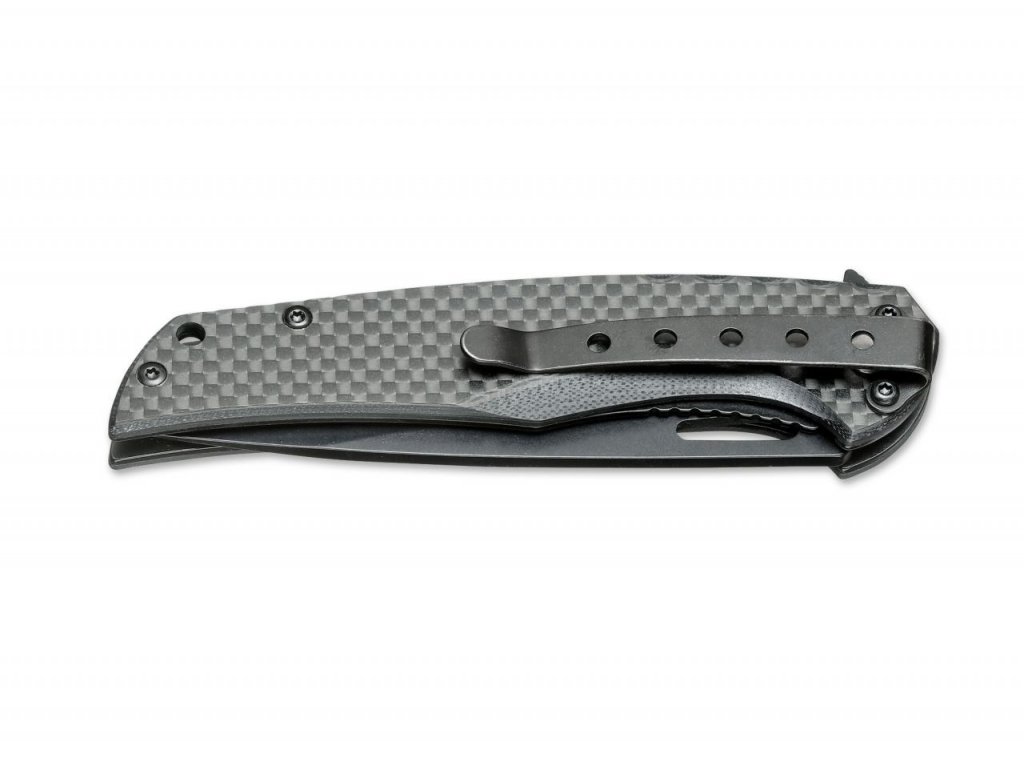 A Böker Magnum Black Carbon elegáns kés mindennapi használatra. A szénszálas markolat nagyon attraktív kilakítást kölcsönöz a késnek, miközben biztosítja a kés kis súlyát. A penge 440A rozsdamentes acélból készült, fekete felületkezeléssel és flipper típusú nyitással. A kés tartalmaz egy csíptetőt is.