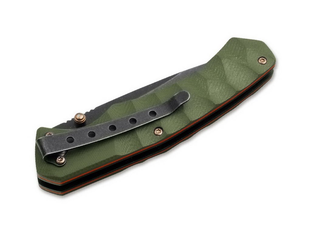 A Magnum Iguanodon egy praktikus zsebkés mindennapi használatra. 8 cm-es penge 440A rozsdamentes acélból készült, mely thumbstick segítségével nyílik. Oliva zöld G10 anyagból készült formázott nyél. Linerlock biztosítékkal és akasztócsipesszel ellátva.Magnum by Böker