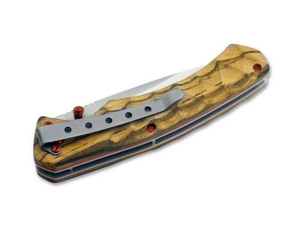 A Boker Magnum Red Pupil egy mindennapi használatra szánt zsebkés, amely kiváló minőségű fa nyéltartozékaival és piros színárnyalataival vonz. 8,2 cm hosszú penge 440A rozsdamentes acélból, mely thumbstick segítségével nyílik. Zebrafa (Zebrano) nyéllel, linerlock biztosítékkal és akasztócsipesszel van ellátva.