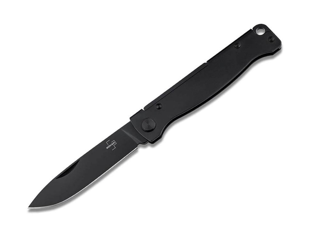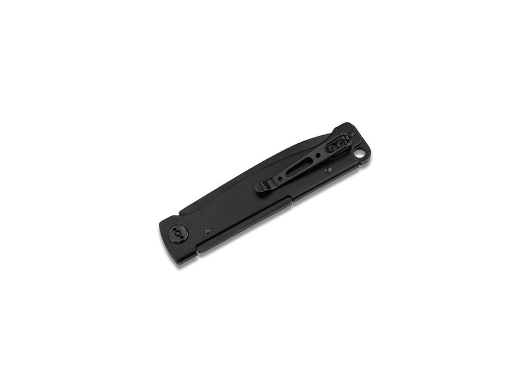 A Böker Plus Atlas All Black zsebkés ideális mindennapi viseletre. Az „All Black” változat teljes egészében fekete színű, elegáns és minimalista dizájnnal rendelkezik. A penge fekete színű 12C27 rozsdamentes acélból készült, drop point formájú, lapos élkiképzéssel. A penge hossza 6,7 cm.