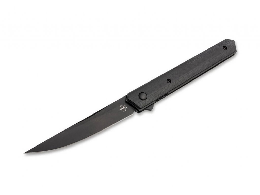 A vékony kialakítás és az exkluzív anyagválaszték a Böker Plus Kwaiken Air kést elegáns hibridjévé teszi az gentleman kés és a taktikai kés között. A Mini változat kompakt méretekben hozza ezt a kést. A penge japán VG-10 rozsdamentes acélból készült, fekete felülettel, lapos élezésű és csapágyakra van felszerelve. A markolat acélszerkezete G10 pengékkel nagyon könnyűvé és erőssé teszi a kést. Könnyű, egykezes nyitás flipperrel, liner lock-kal. A csíptető lehetővé teszi a kés mélyen hordását. Minőségi nylon tok a kés tárolására.