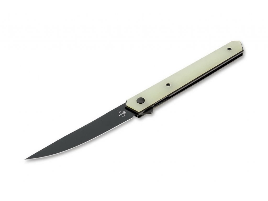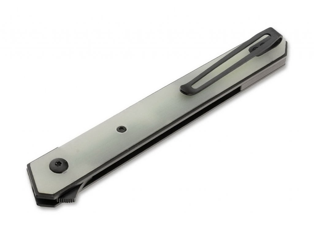 A vékony kialakítás és az exkluzív anyagválaszték a Böker Plus Kwaiken Air kést elegáns hibridjévé teszi az gentleman kés és a taktikai kés között. A Mini változat kompakt méretekben hozza ezt a kést. A penge japán VG-10 rozsdamentes acélból készült, matt felülettel, lapos élezésű és csapágyakra van felszerelve. A markolat acélszerkezete fekete jádezöld G10-nel nagyon könnyűvé és erőssé teszi a kést. Könnyű, egykezes nyitás flipperrel, liner lock-kal. A csíptető lehetővé teszi a kés mélyen hordását. Minőségi nylon tok a kés tárolására.