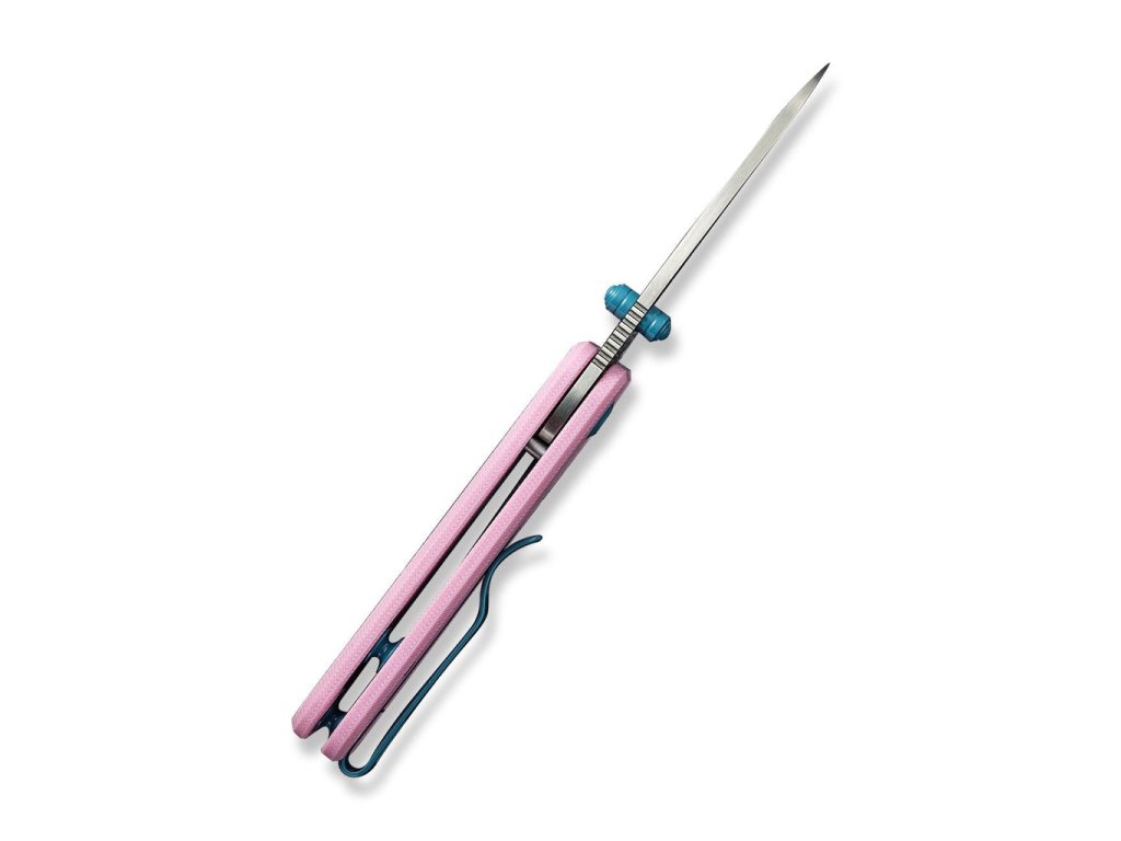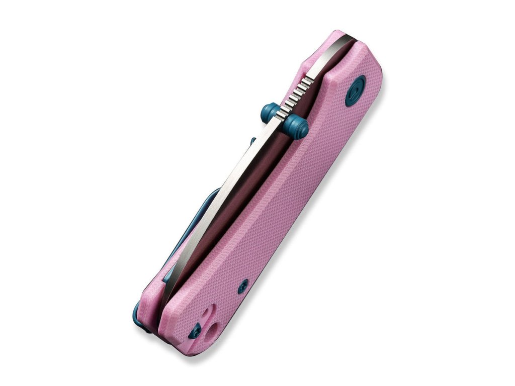 A markolat finom rózsaszín G-10 anyagból készült. A kés nyitása nagyon egyszerű és sima, a penge kerámia csapágyakon fut. Az egykezes nyitáshoz elegendő a hüvelykujjas csap használata. A kés mindkét oldalra felszerelhető rozsdamentes acél klippel rendelkezik.