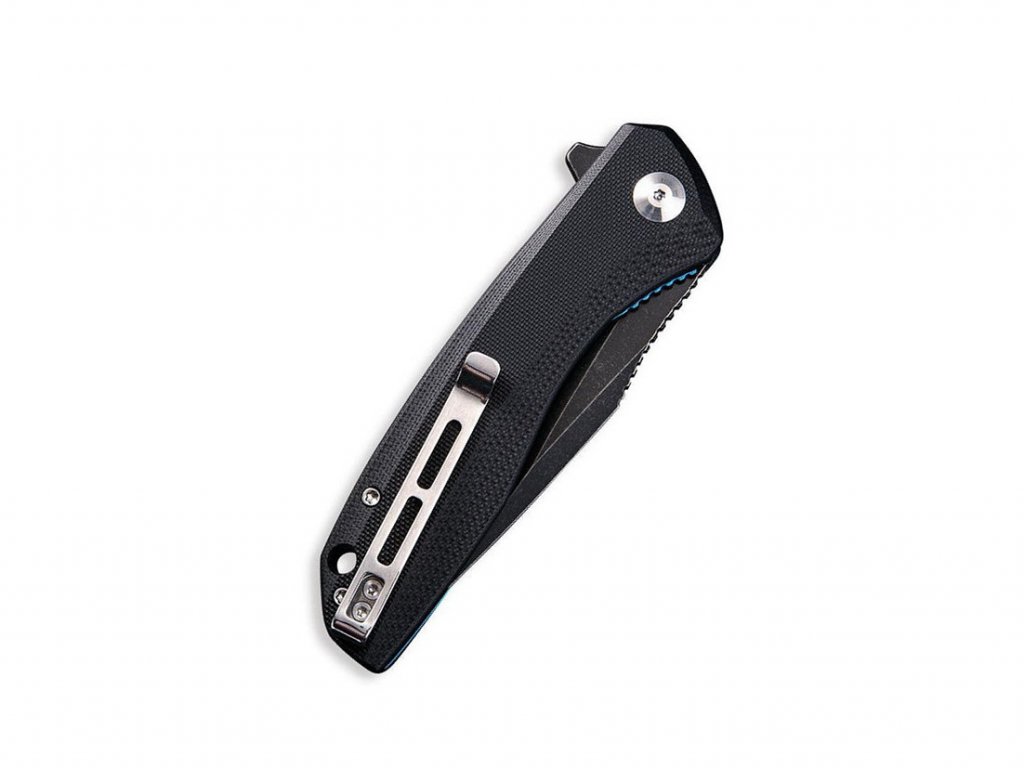 Az elegáns Civivi Baklash összecsukható kés kiváló minőségű anyagokból készült EDC kés. A 9Cr18MoV rozsdamentes acél penge fekete stonewash felülettel rendelkezik és betétzár biztosítja. Markolat fekete G10-ből. A rozsdamentes acél klipp segítségével a felfüggesztés mindkét oldalon lehetséges (jobb/bal). Az egykezes nyitást a flipper biztosítja. A kés kinyitása nagyon egyszerű és sima, a penge kerámia csapágyakra van helyezve.