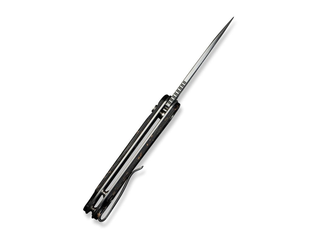 A kés zárását kényelmes és biztonságos gombzár (button lock) biztosítja, amely megakadályozza a véletlen kinyílást a zsebben. A penge kerámia csapágyakon fut, így a nyitás rendkívül sima és gyors. A kés súlya 81 gramm.