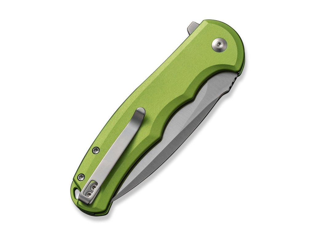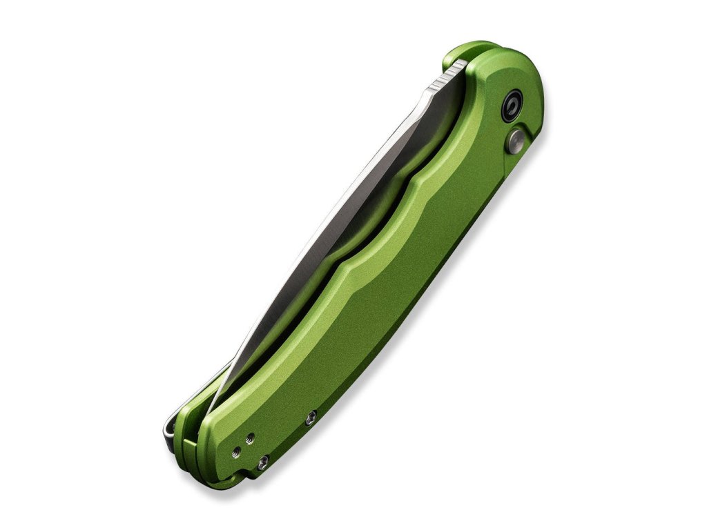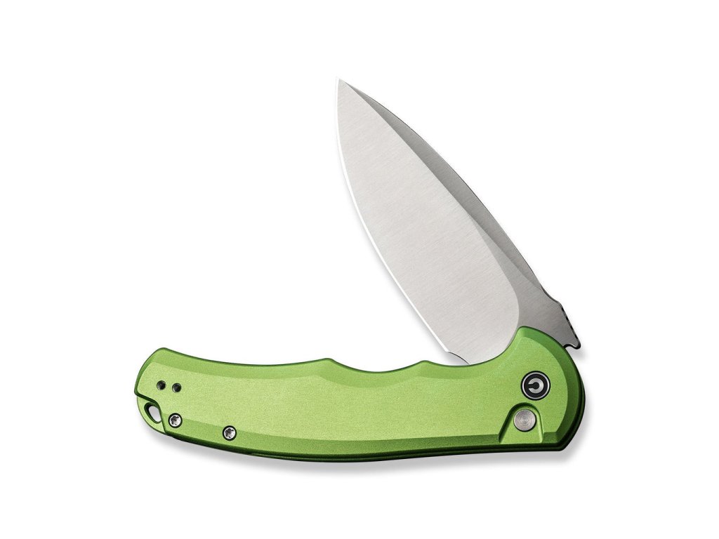 A penge 9,5 cm hosszú, Nitro-V rozsdamentes acélból készült, drop point formájú, szatén felületkezeléssel. A kés zárása nagyon kényelmes a gombos zárrendszernek köszönhetően. A markolat lime zöld árnyalatú alumíniumból van.