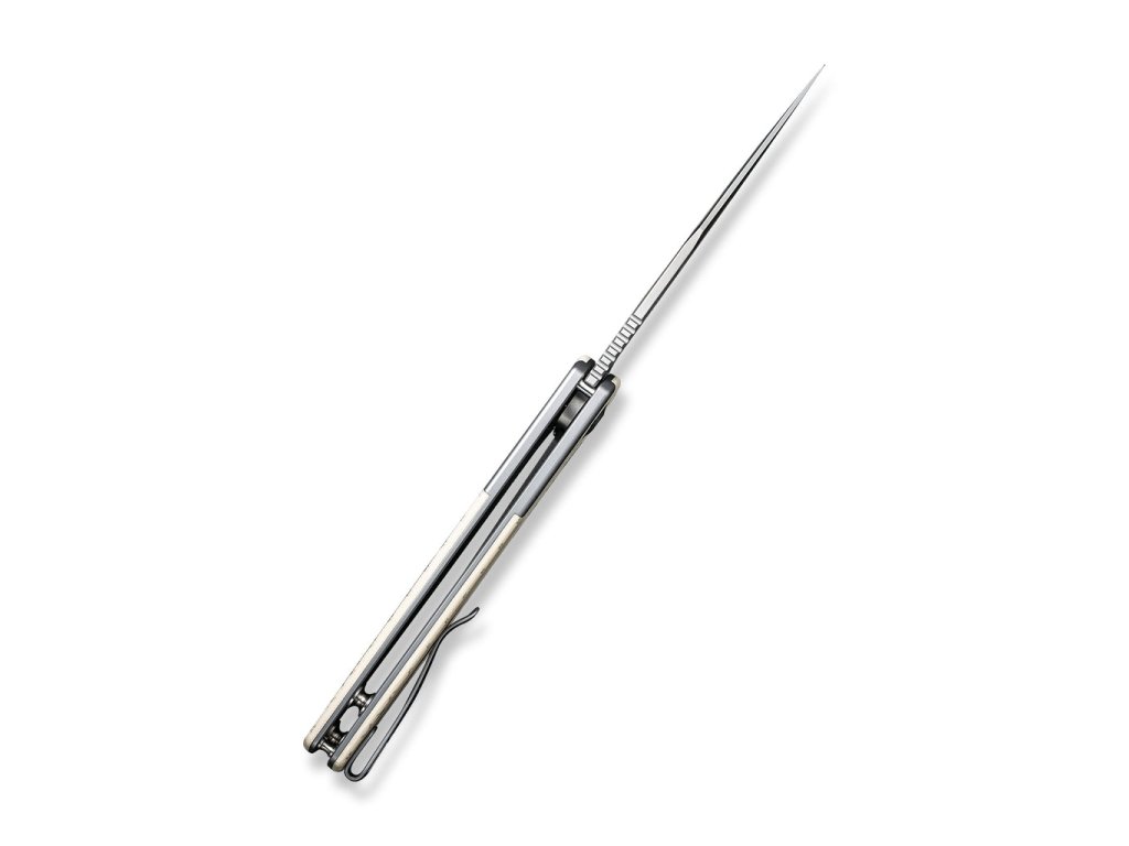 A Civivi Cachet C20041B-2 egy mindennapi használatra alkalmas zsebkés. Közepes méret és magas funkcionalitás teszi a kést a sokoldalú felhasználás kiváló eszközévé. Penge hossza 8,8 cm Sandvik 14C28N rozsdamentes acélból, gyöngyfúvott felülettel. A kés rögzítése nagyon kényelmes a frame lock mechanizmusának köszönhetően. A markolat rozsdamentes acélból készült, betétekkel G-10 anyagból. A kés kinyitása nagyon egyszerű és sima, a penge kerámia csapágyakra van helyezve. Gyorsan kinyithatja a kést egy kézzel a flipper segítségével. A kés kétoldalas rozsdamentes acél akasztókapcsot tartalmaz.