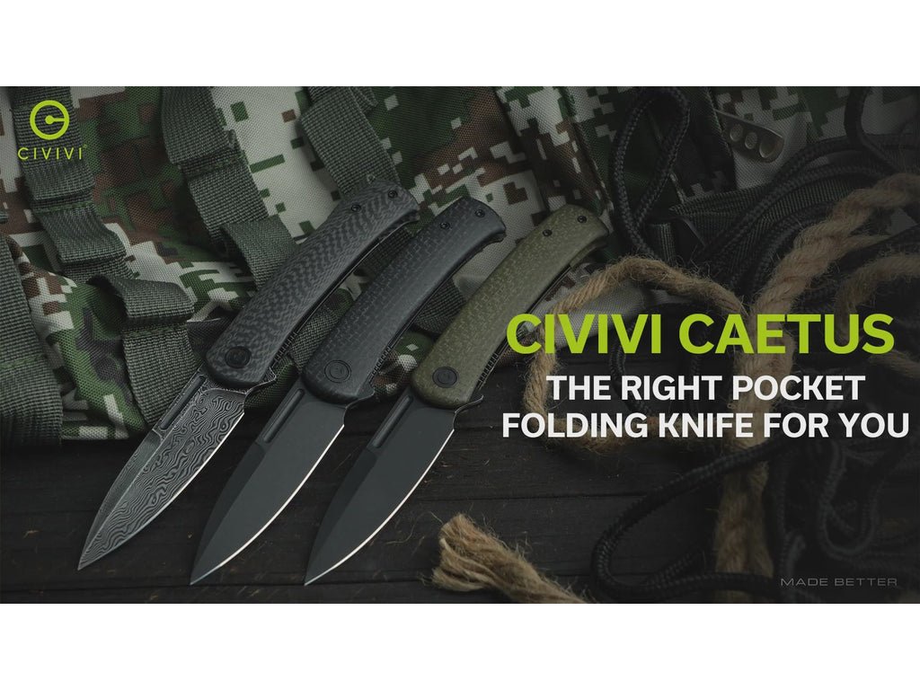 Bemutatkozik a Civivi Caetus szénfekete színben. A kés egy záróható kés és a mindennapi használatra szánt kések kategóriájába tartozik. Egy egy kézzel a csap segítségével nyílik, ahol egy liner lock biztosítja a nyitott helyzetben. A kés kerámia golyóscsapágyakkal rendelkezik, amelyek biztosítják a kés sima és hosszú távú problémamentes működését.
