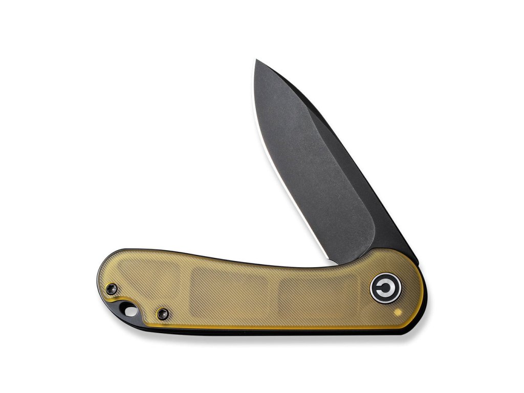 A Civivi Elementum egy kisebb, elegáns EDC kés, amely luxusos hatást kelt. A penge D2 szerszámacélból készült, fekete stonewash felületkezeléssel és homorú élkiképzéssel. A pengét liner lock zár rögzíti.
