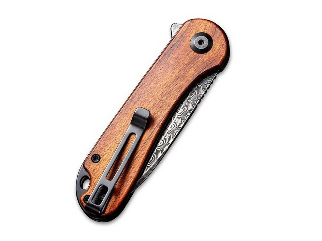 Egy összecsukható kés, amely lenyűgöz egyszerű kialakításával és feldolgozásának minőségével. A Civivi Elementum egy kisebb, elegáns EDC kés egy kis luxussal, amit a felhasznált anyagok adnak meg neki. Az 58-60 HRC keménységű damaszkuszi acélból készült penge érdekes mintázattal rendelkezik, amely minden késnél egyedi, és holkeres élezésű. A penge liner lock zárral van rögzítve. A sötét egzotikus Cuibourtia fából készült nyél fényűző és elegáns megjelenést kölcsönöz a késnek. Rozsdamentes acél kés akasztócsipesz. Az egykezes nyitást a flipper biztosítja. A kés kinyitása nagyon egyszerű és sima, a penge kerámia csapágyakra van helyezve.