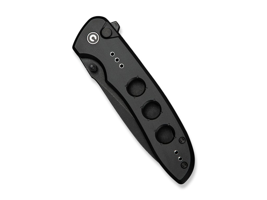 A 11,4 cm hosszú markolat fekete alumíniumból készült, amely kényelmes, ergonomikus fogást nyújt még hosszabb használat esetén is. A kés flipperrel vagy a pengén lévő nyitószemölccsel nyitható, a biztonságos zárást pedig a rendkívül megbízható button lock rendszer biztosítja. A kerámia golyóscsapágyak sima, gyors és tartós működést garantálnak.