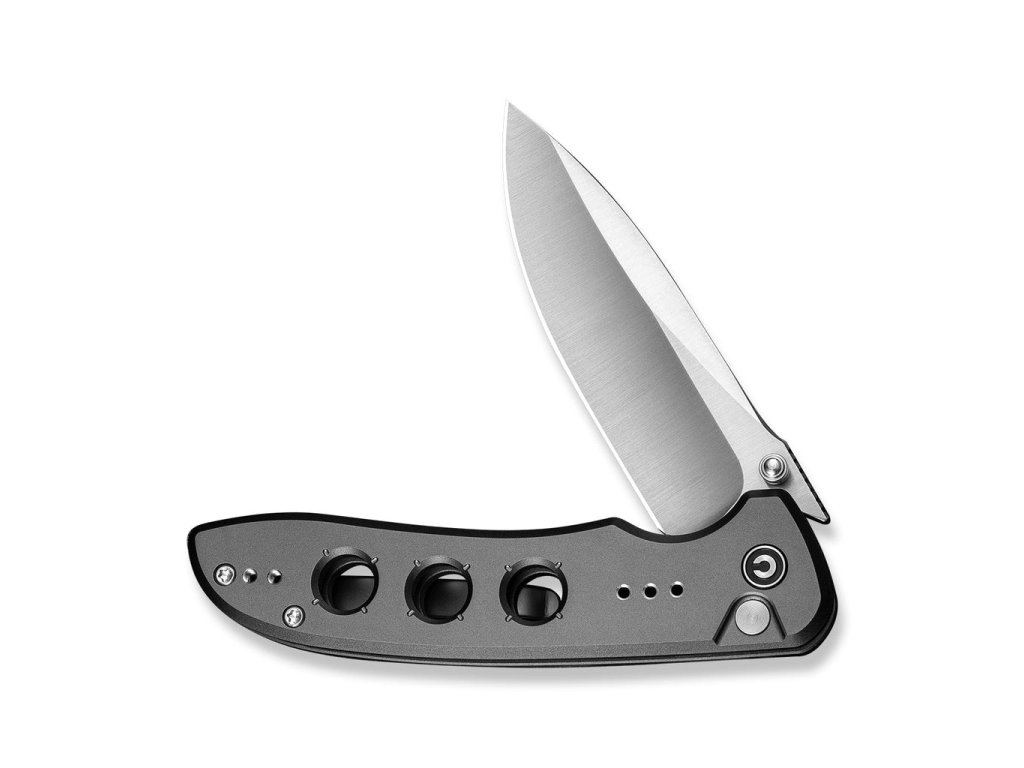 A 11,4 cm hosszú markolat szürke alumíniumból készült, ergonomikus kialakítása kényelmes fogást nyújt, így hosszabb használat esetén sem fárasztja a kezet. A kést flipperrel vagy a pengén található nyitószemölccsel lehet kinyitni. A button lock zárszerkezet rendkívül biztonságos. A kerámia golyóscsapágyak sima és tartós működést garantálnak.