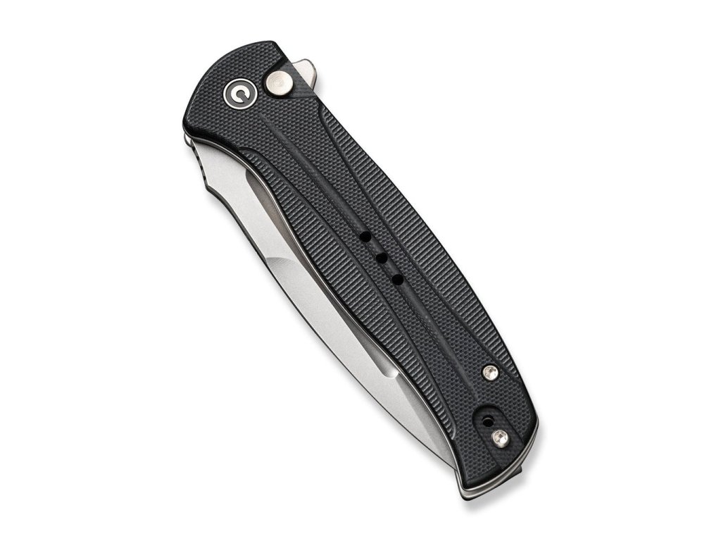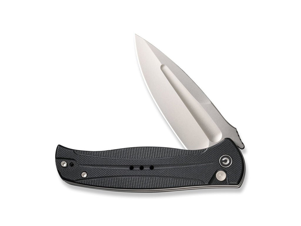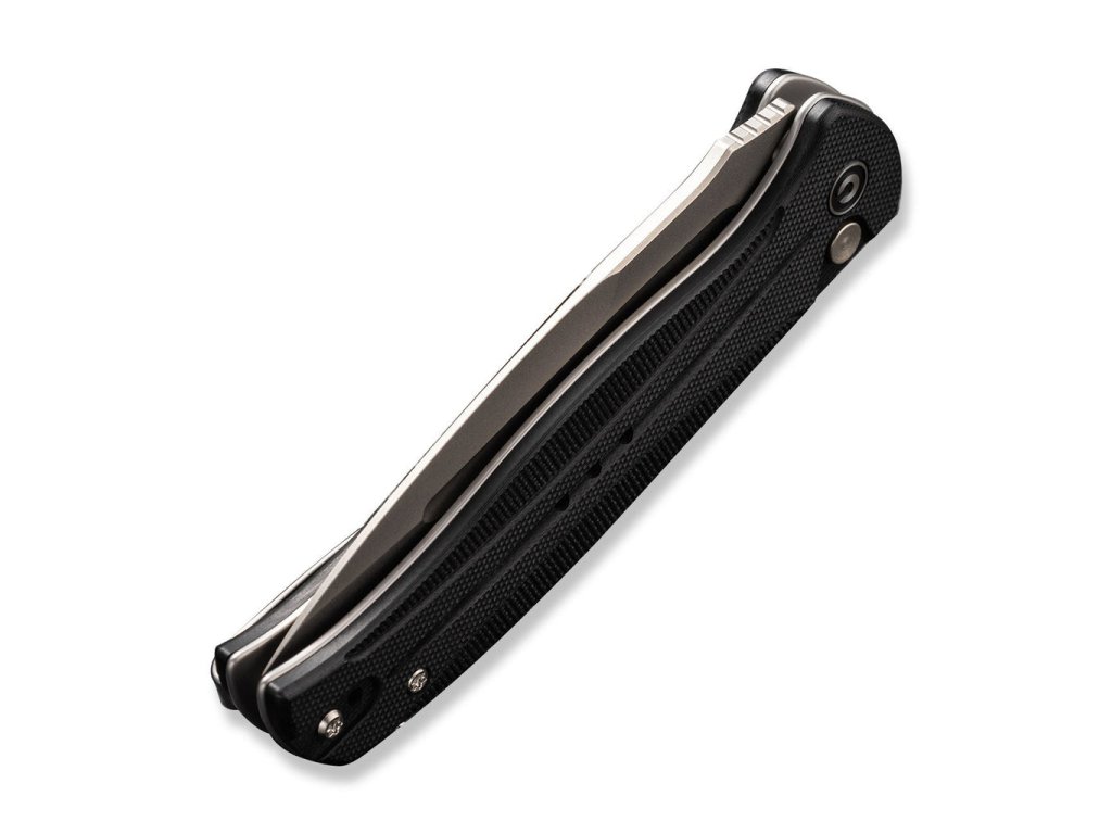 A 11,3 cm hosszúságú markolat fekete G10-ből készült, és kényelmes fogást garantál, amely nem fárasztja el a kezét. Nyitás flipperrel vagy nyomógombbal történik, a kés pedig gombzárral van rögzítve, ami lehetetlenné teszi a véletlen nyitást. A kés kerámia golyóscsapágyakkal rendelkezik, amelyek biztosítják a kés zökkenőmentes és tartósan problémamentes működését.