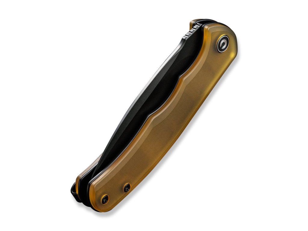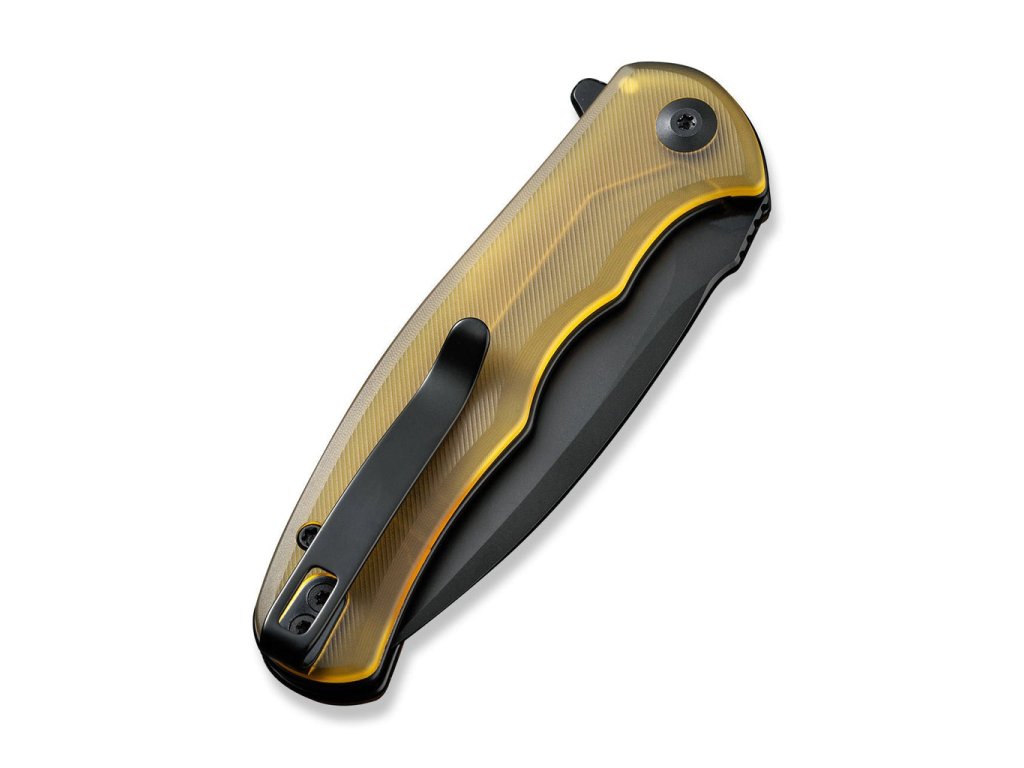 A penge 59–61 HRC keménységű D2 acélból készült, fekete bevonattal és lapos leélezéssel. A biztonságos zárást liner lock mechanizmus garantálja. A sárga színű markolat Ultem™ anyagból készült, amely egy csúcskategóriás, repülőgépiparban használt hőálló termoplasztikus műanyag. Különösen nagy szilárdságáról és extrém körülményekkel szembeni ellenállásáról ismert. A kés flipperrel egy kézzel könnyedén nyitható, a penge kerámia csapágyakon fut, így a nyitás gyors és sima.