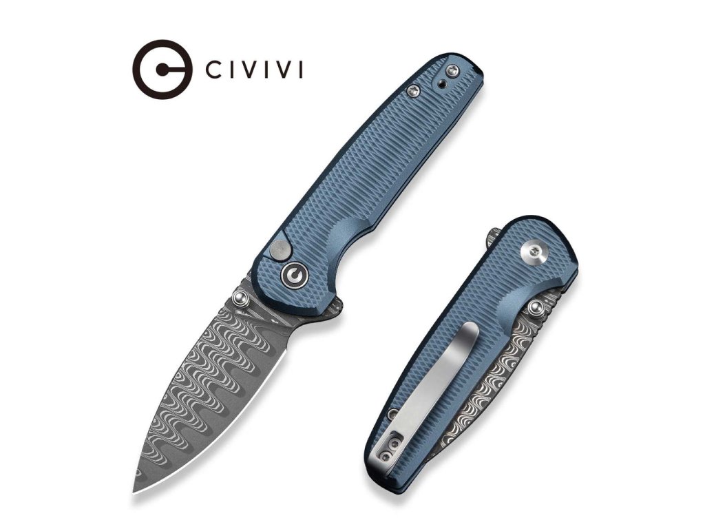 Civivi Mini Shakan C20052F-DS1 Blue Aluminum Damascus zsebkés