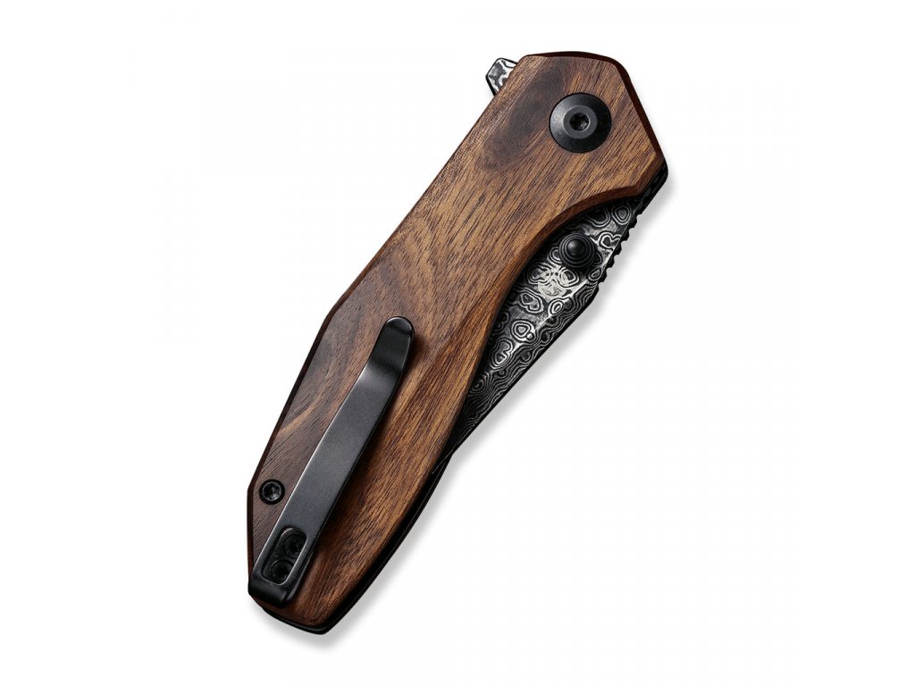 A Civivi ODD 22 C21032-DS1 egy összecsukható kés, amely mindennapi használatra alkalmas. Közepes méret és magas funkcionalitás teszi a kést a sokoldalú felhasználás kiváló eszközévé. A szokatlan, 7,5 cm hosszú, damaszkuszi acélból készült penge clip point alakúra készült. A kés reteszelése nagyon kényelmes a linerlock mechanizmusnak köszönhetően. Az egzotikus Cuibourtia fából készült nyél fényűző és elegáns megjelenést kölcsönöz a késnek. A kést kényelmesen kinyithatja egy kézzel, egy flipper vagy csap segítségével. A penge kerámia csapágyakra van felszerelve. A kés kétoldalas rozsdamentes acél akasztókapcsot tartalmaz.