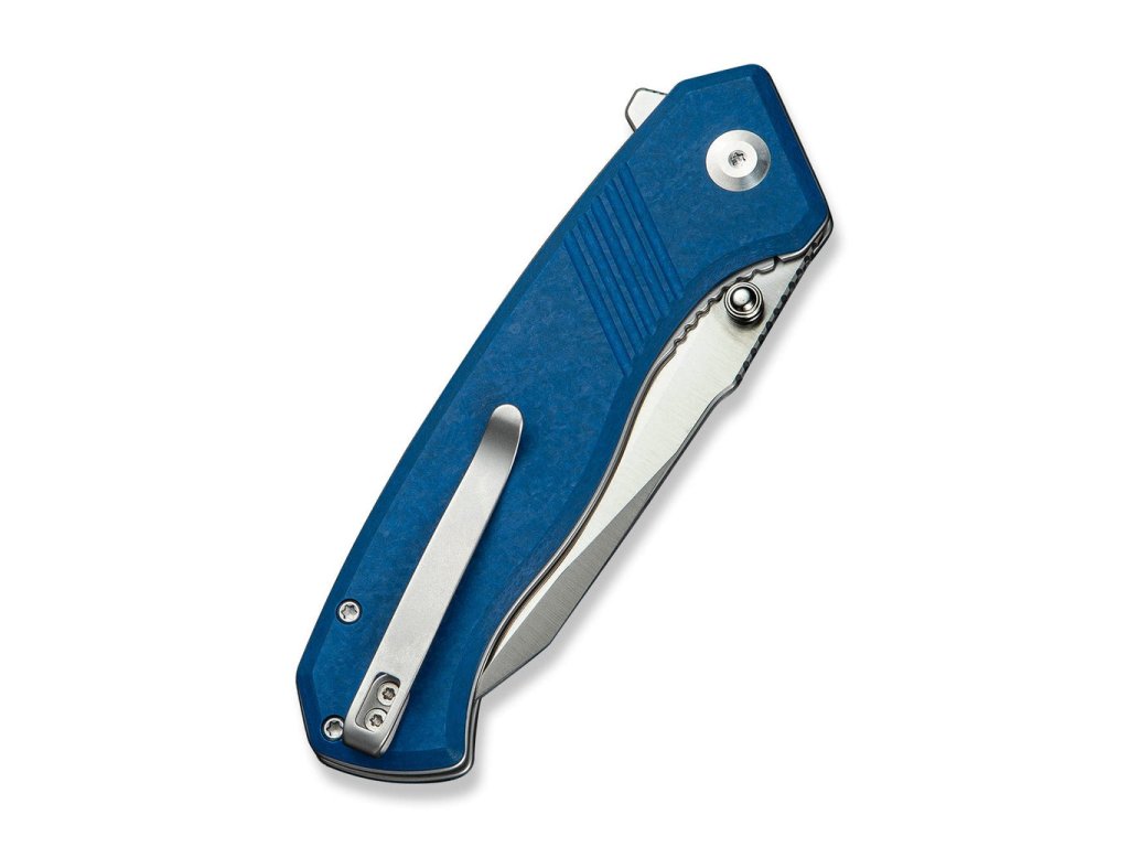 A markolat 12,7 cm hosszú, kék G10 anyagból készült, kényelmes fogást biztosít, így nem fárasztja el a kezet. A texturált felület nagy előnyt jelent, mivel biztosabb fogást nyújt. A kés flipperrel vagy a pengén lévő nyitófüllel nyitható, és liner lock zárral van biztosítva. Kerámia golyóscsapágyak gondoskodnak a sima és hosszú távon megbízható működésről.