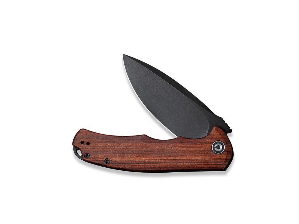 Elegáns összecsukható kés fa nyéllel és rozsdamentes acél pengével. A Civivi Praxis egy egyedi megjelenésű EDC kés. Penge rozsdamentes acélból 9Cr18Mov acélkeménység 57-59 HRC lapos élezéssel. A penge liner lockral van rögzítve. Az egzotikus Cuibourtia fából készült nyél fényűző és elegáns megjelenést kölcsönöz a késnek. A rozsdamentes acél akasztókapocs mindkét oldalon (jobbra/balra) megfordítható. Egykezes nyitás flipper segítségével. A kés kinyitása nagyon egyszerű és sima, a penge kerámia csapágyakra van helyezve.