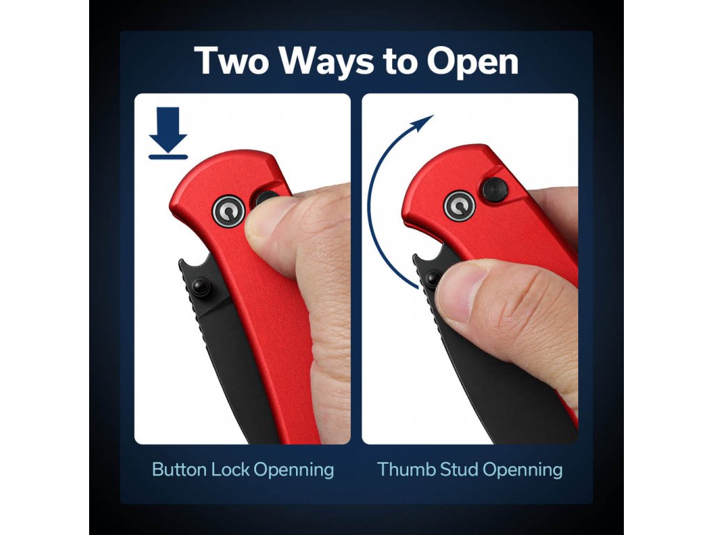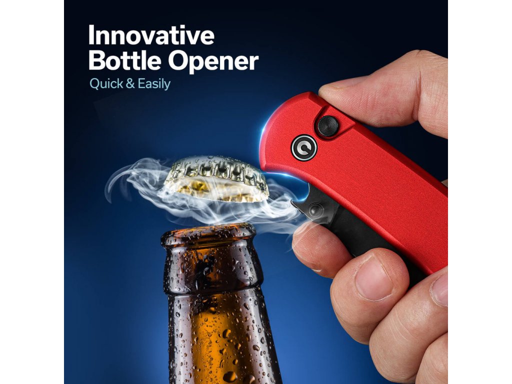 A kés kerámia golyóscsapágyakkal is rendelkezik, amelyek biztosítják a kés zökkenőmentes mechanikai működését. A kés markolata vörös alumíniumból készült. Amikor a kés zárt állapotban van, a behajtott pengének köszönhetően üvegnyitóként is szolgálhat. Zárt állapotban a kés mérete 10,7 cm. A kés egy Tip-Up klipszet is tartalmaz a felakasztáshoz, így könnyen hordozható az új mindennapi társa. A kés súlya mindössze 80 g, így kezelése nagyon kényelmes, precíz és fáradhatatlan. Tapasztalja meg a funkcionalitást, a kényelmet és a szépséget egy csomagban, amelyre mindig számíthat a mindennapi vágási tevékenységek során.