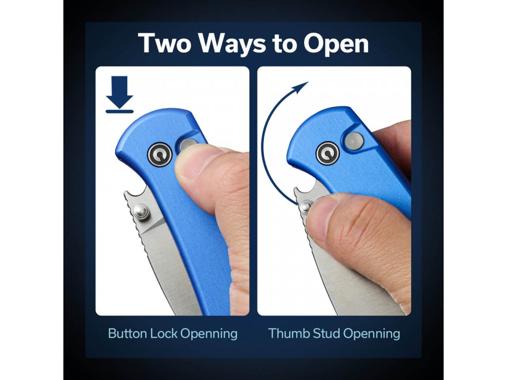 A kés kerámia golyóscsapágyakkal is rendelkezik, amelyek biztosítják a kés zökkenőmentes mechanikai működését. A kés markolata kék alumíniumból készült. Amikor a kés zárt állapotban van, a behajtott pengének köszönhetően üvegnyitóként is szolgálhat. Zárt állapotban a kés mérete 10,7 cm. A kés egy Tip-Up klipszet is tartalmaz a felakasztáshoz, amely megkönnyíti az új mindennapi társad hordozását. A kés súlya mindössze 80 g, így kezelése nagyon kényelmes, precíz és fáradhatatlan. Tapasztalja meg a funkcionalitást, a kényelmet és a szépséget egy csomagban, amelyre mindig számíthat a mindennapi vágási tevékenységekben.