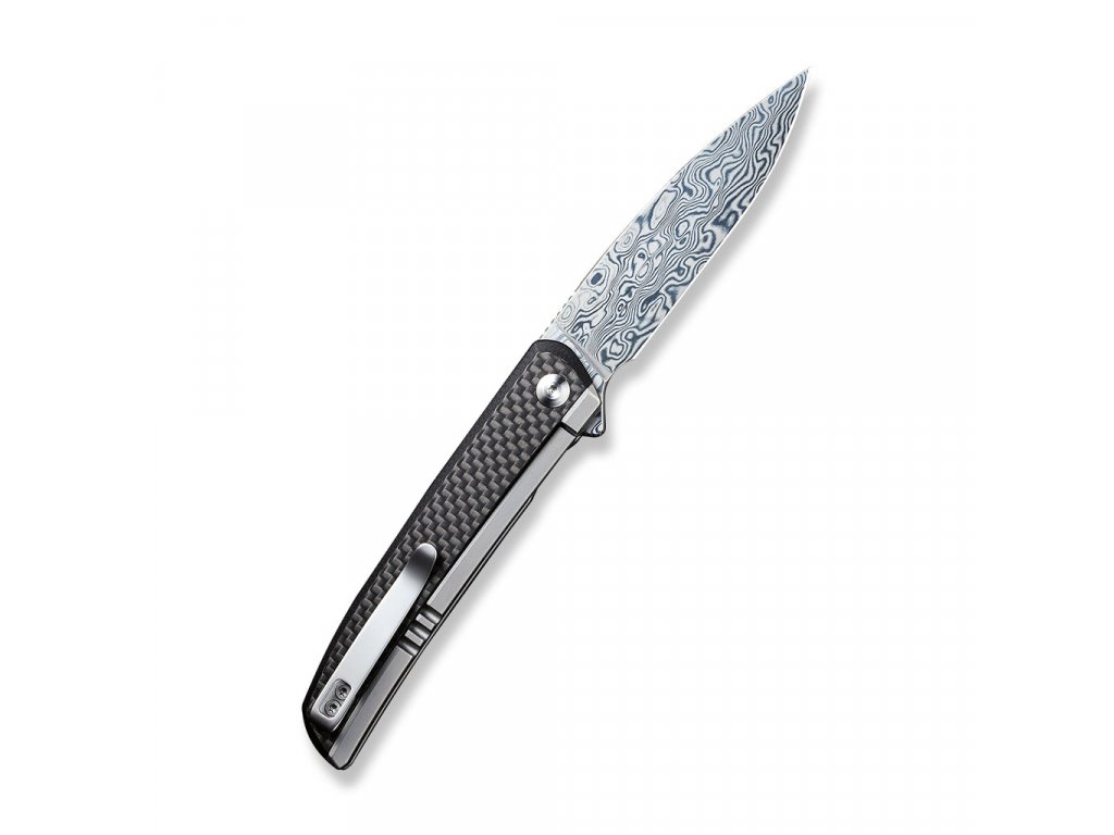 A Civivi Savant C20063B-DS1 zsebkés nagyszerű eszköz a mindennapi használatra. Már az első használat után beleszeret az ideális méretbe és a magas funkcionalitásba. A 8,8 cm hosszú penge kiváló minőségű damaszkuszi acélból készült, ledrop pointos formában. A kés reteszelése a frame lock-mechanizmusnak köszönhetően jól biztosított. A markolat rozsdamentes acélból készült, G-10 anyagú betéttel. A kés kinyitása nagyon egyszerű és sima, a penge kerámia csapágyakra van helyezve. A kés kétoldalas rozsdamentes acél akasztókapcsot tartalmaz.