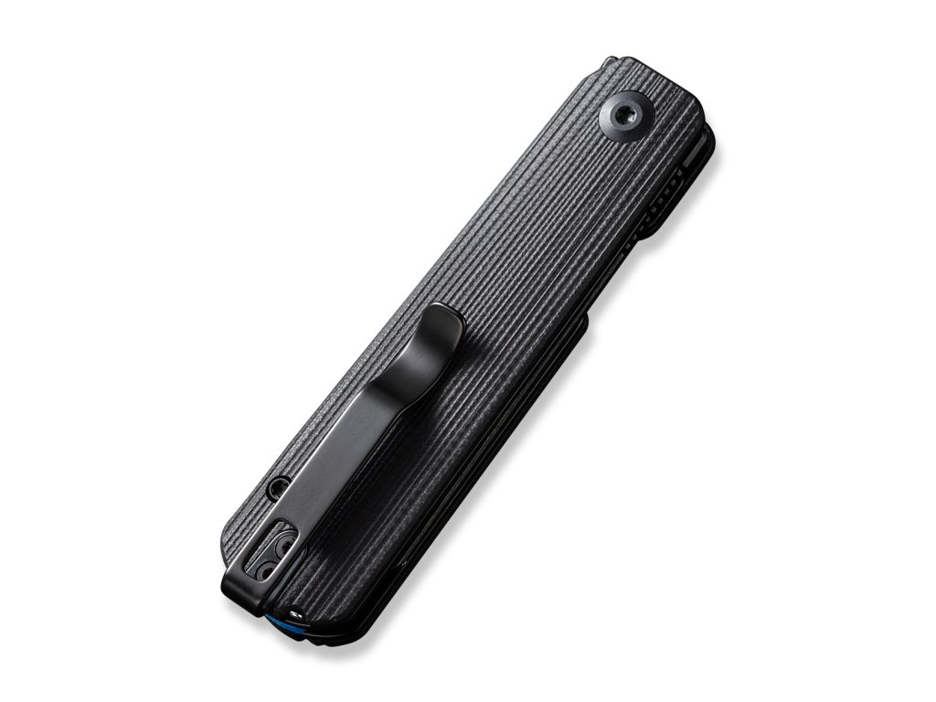 A markolat pengéi fekete G10-ből készültek. A kés felakasztására szolgáló rozsdamentes acélból készült klipsz megfordítható, és lehetővé teszi a mély hordozást. Az egykezes nyitást egy in-line flipper biztosítja. A kés nyitása nagyon könnyű és sima, a penge kerámia csapágyakon van rögzítve.