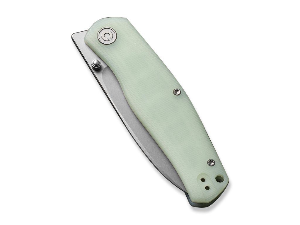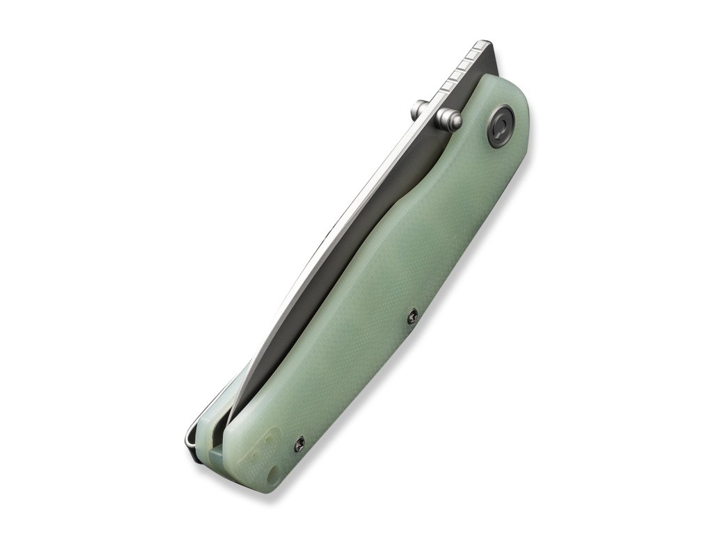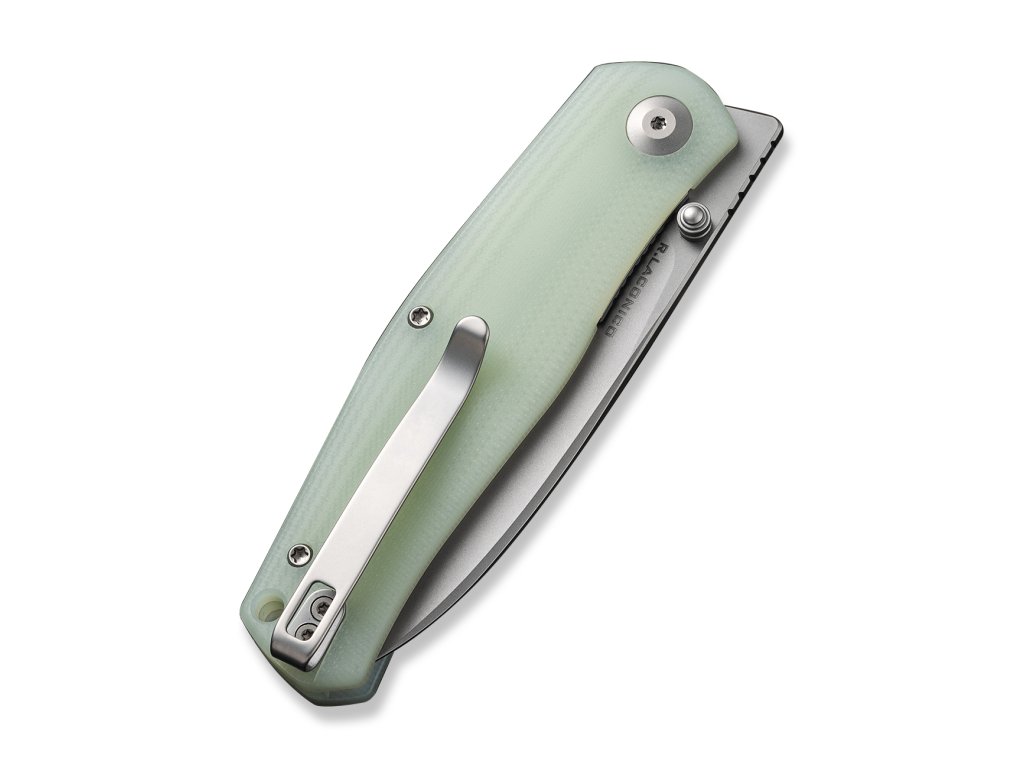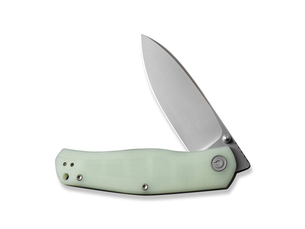 A markolat pengéi természetes színű G10 anyagból készültek. A kés felakasztására szolgáló rozsdamentes acél klipsz megfordítható, és lehetővé teszi a mélyen hordozást. Az egykezes nyitást az elülső flipper vagy a pengén lévő csap biztosítja (kétoldalas). A kés nyitása nagyon könnyű és sima, a penge kerámia csapágyakon van rögzítve.