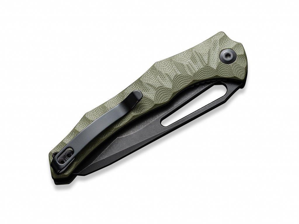 A Civivi Spiny Dogfish egy zsebes EDC kés - mindennapi használatra alkalmas. A fordított tanto alakú penge 8,82 cm hosszú, és masszív hegyével kiemelkedik. A penge Sandvik 14C28N rozsdamentes acélból készült, fekete stonewash felülettel. Zöld G10 markolat. A penge kerámia csapágyakra van felszerelve. A rozsdamentes acél akasztócsipesz jobb oldali viseletre alkalmas.