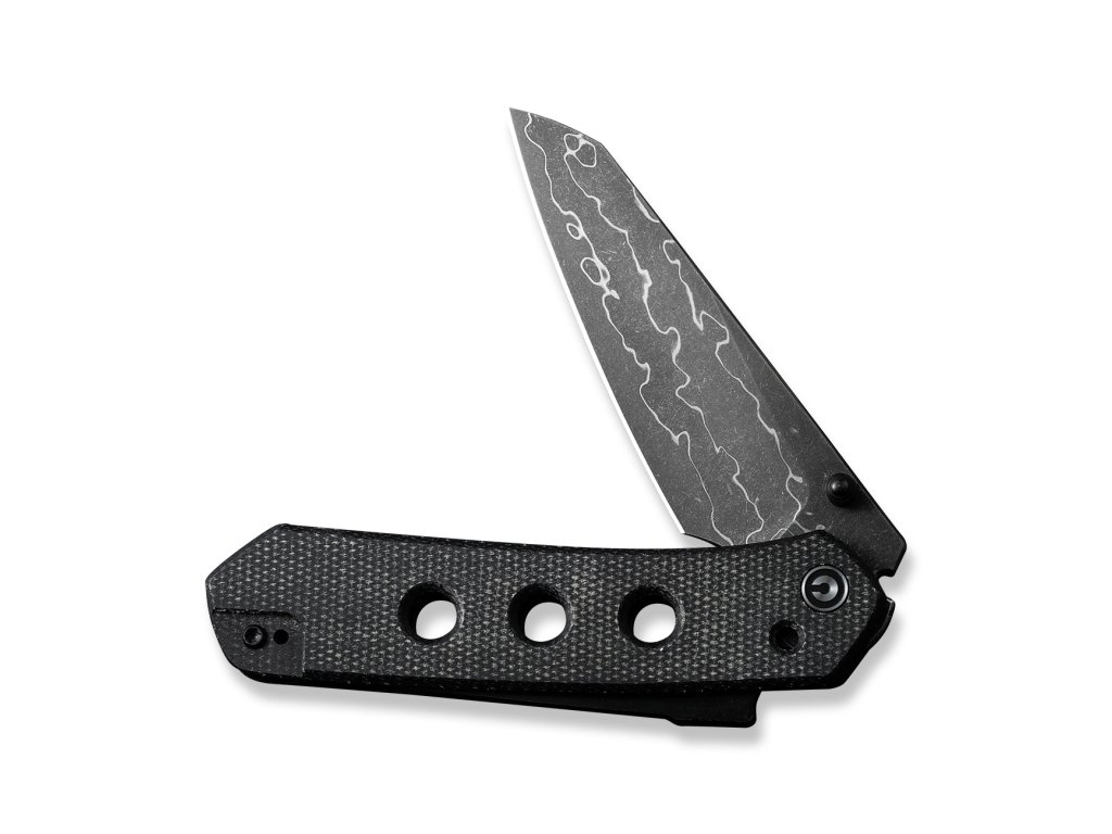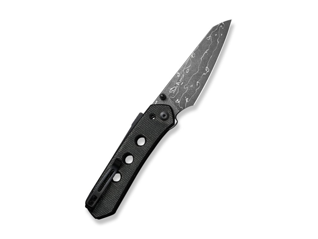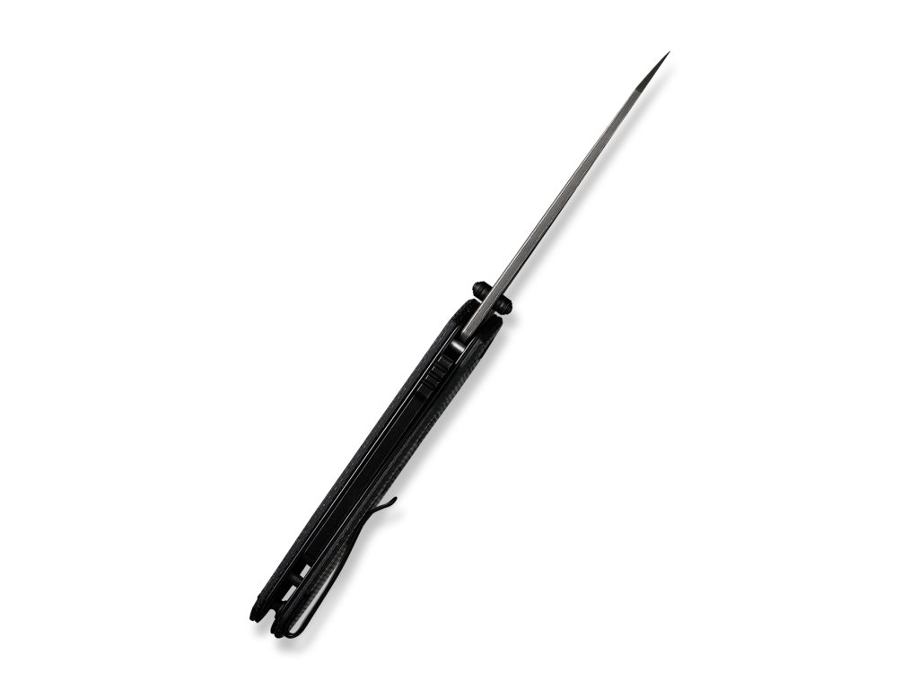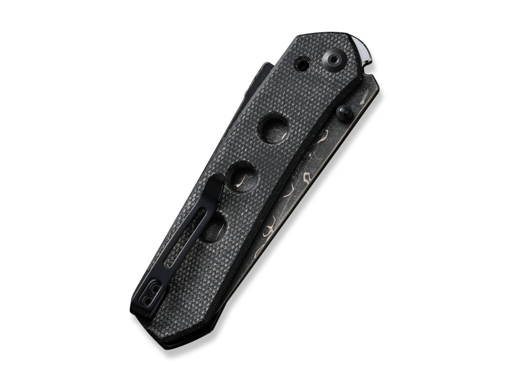 A markolat pengéi fekete micartából készültek, kellemes csúszásmentes textúrával. A rozsdamentes acél zsebcsipesz megfordítható és mélyen hordható. Nyitás a pengén lévő csap segítségével.