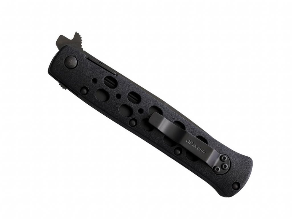 A Ti-Lite Zytel kések a Cold Steel Ti-Lite összecsukható kések családjának megfelelőit utánozzák, de észrevehető változásokat mutatnak. A Zytel vonalnál a japán AUS-8A rozsdamentes acélt használják a pengéhez, és nem az amerikai S35VN acélt. Változás történt a nyélben is, ami abból az anyagból készült, amelyről a kést elnevezték: Zytel vagy másként Zy-Ex. A Zytel egyfajta üvegszálerősítő nylon (FRN), egy hőre lágyuló anyag, amelyet az amerikai DuPont vegyipari vállalat vezet be. A Zytel szuper erős, ellenáll a hajlításnak, kopásnak és gyakorlatilag elpusztíthatatlan. Ezeknek a változtatásoknak köszönhetően a kés könnyebb és erősebb, mint Ti-Lite elődei, súlya pedig 113g. A penge spear point alakú, mérete 10 cm, teljes hossza 22 cm. A késnek fekete felületkezelésű pengéje van, és a fekete markolattal együtt elegáns és szemet gyönyörködtető benyomást kelt. A záróbiztosíték egy linerlock a Cold Steel márka által szabadalmaztatott másodlagos biztosítékkal - Leaf rugós zár. A könnyű hordozhatóság érdekében a Ti-Lites egy kicsi, de nem feltűnő acél zsebcsipesszel van felszerelve. Nyitás csappal.