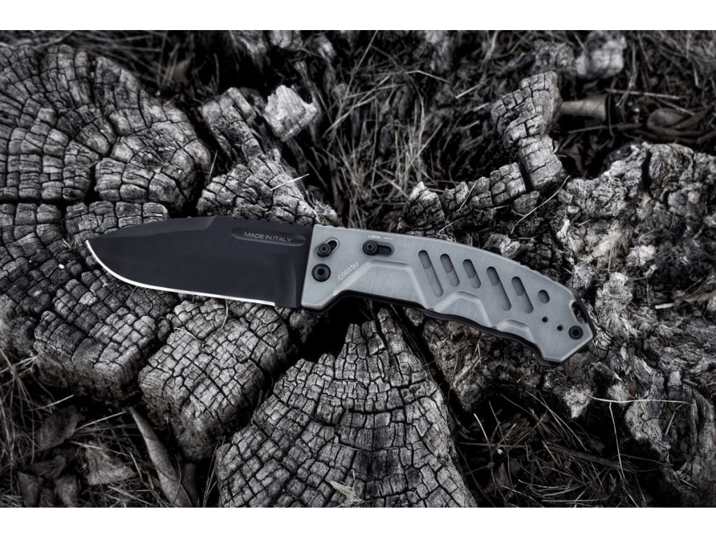 A markolat acél vázát eloxált alumínium borítású betétekkel egészítették ki. Két alumínium oldallap növeli a markolat merevségét, hogy a kés zordabb feladatok mellett is megbízható legyen. Az eloxált alumínium felület oxidációs kezelést kapott, hogy ellenállóbbá váljon a kopással szemben és a korrózióval szemben. A kés kétoldali klippel rendelkezik, amely lehetővé teszi a rejtett hordást a zsebben, így a kés gyakorlatilag nem látszik.