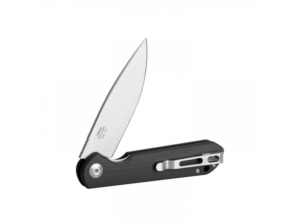 A kés pengéje D2 típusú szerszámacélból készült, 8,8 cm hosszú és 3,5 mm vastag, 60 HRC keménységűre edzett. A markolat fekete színű G10 anyagból készült, és nagyon kényelmes a fogása. Mindent egybevetve ez a kés 20,2 cm-es teljes hosszúságot kínál nyitott formában, súlya pedig mindössze 101 g. A kés nyitása flipperrel történik. A kés nyitott formában a népszerű liner lock mechanizmussal biztosítható. Ha egy jó és megbízható kést szeretne mindennapi használatra, akkor ez a modell megfelel az elvárásainak.