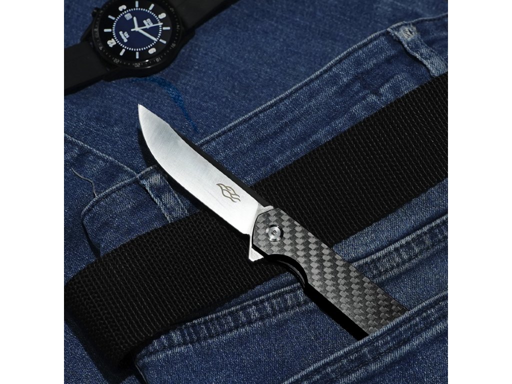 A Ganzo Firebird FH11S-CF zsebkés mindennapi használatra (EDC) alkalmas. A kés pengéje D2 szerszámacélból készült, keménysége 60 HRC. A penge drop point alakú, lapos csiszolású.