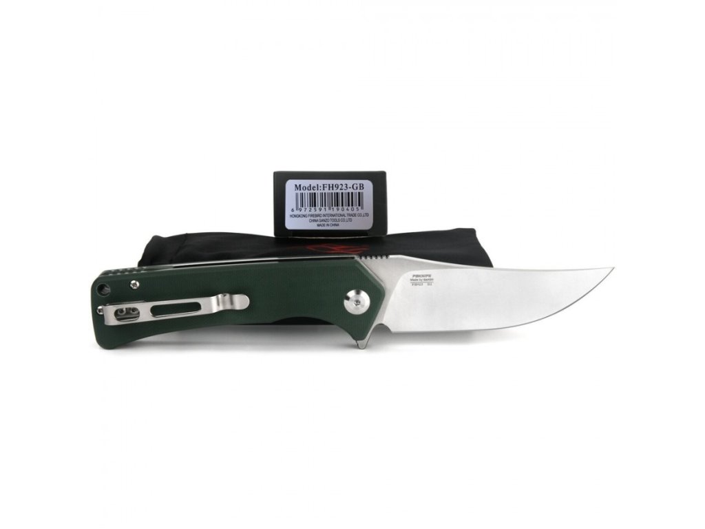 A Ganzo Firebird FH923-GB zsebkés mindennapi használatra (EDC) alkalmas. A penge D2 szerszámacélból készült, keménysége 59–61 HRC között van. A penge trailing point formájú és sík köszörülésű.