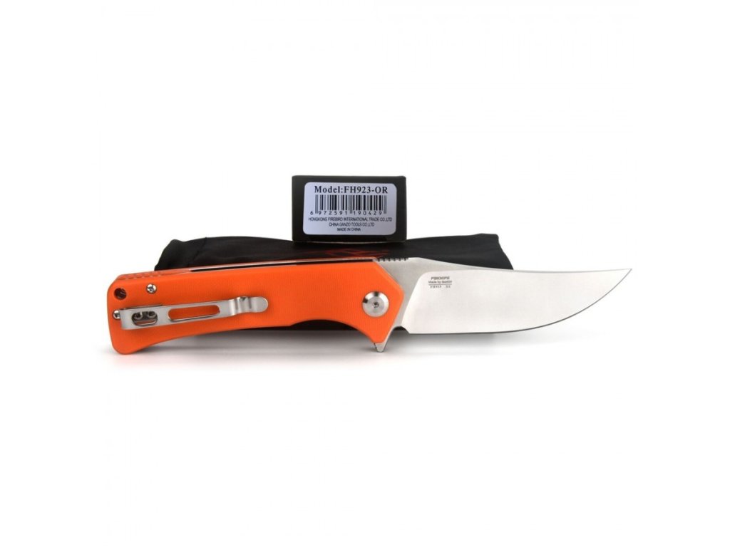 A Ganzo Firebird FH923-OR zsebkés kiválóan alkalmas mindennapi használatra (EDC). Pengéje D2 típusú szerszámacélból készült, 59–61 HRC keménységre edzett. A penge formája „trailing point”, lapos leélezéssel.